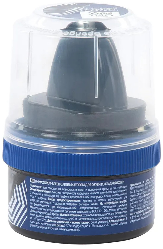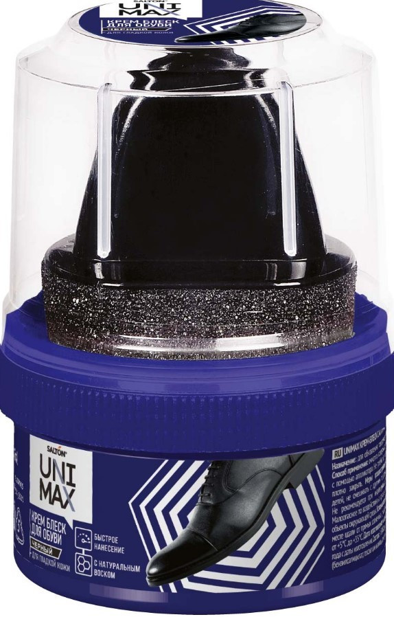 Крем-блеск предназначен для изделий, изготовленных из гладкой кожи. Оснащен специальным аппликатором, позволяющим наносить крем быстро и точно. Питает кожу, придавая ей блеск, заполняет потертости и царапины и устраняет их. Образует на поверхности микропленку, защищающую обувь от воздействия влаги, снега и химических реагентов. Способен вернуть коже первоначальные цвет и яркость.