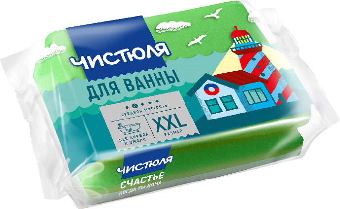 Чистюля Губка для ванной с деликатным абразивом-25% +4 эффективность размер слабый абразив