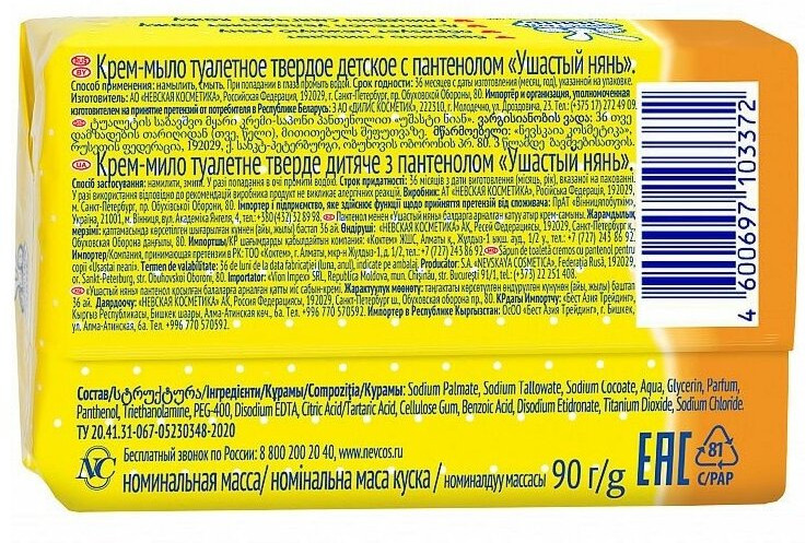 Ушастый нянь Крем-мыло детское с пантенолом-25% +4 некомедогенен мягкое смывает SPF хороший состав доступная цена