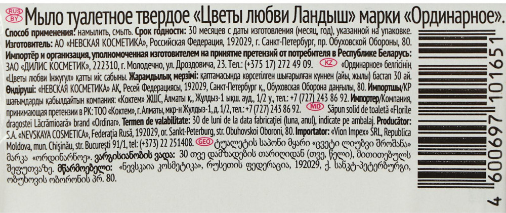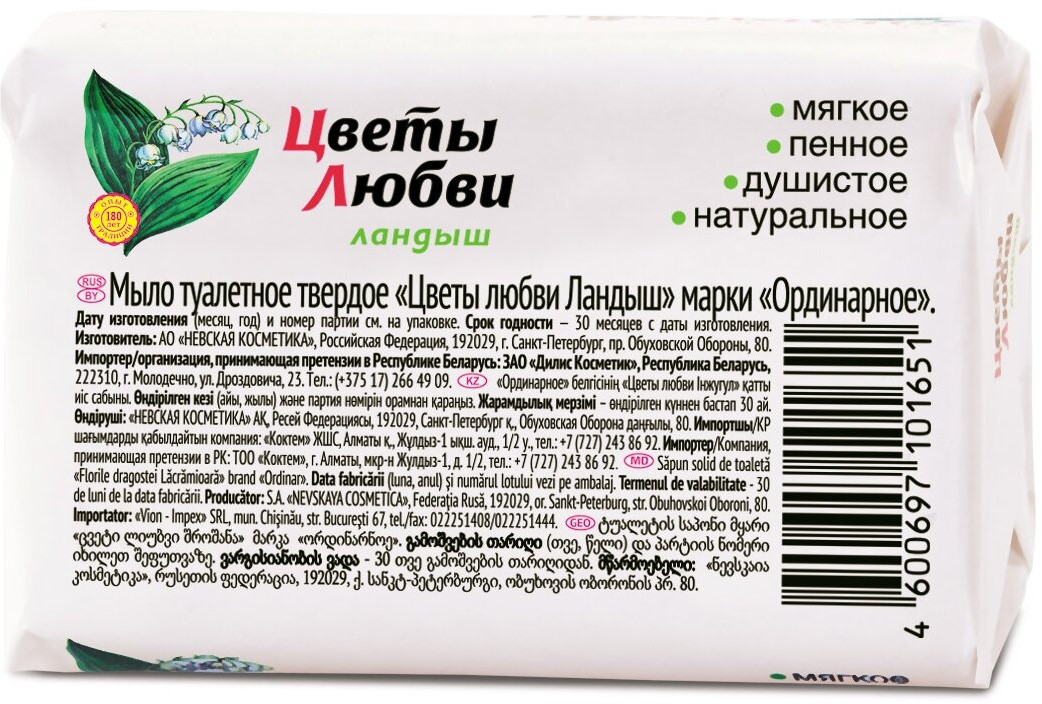 Нормальное недорогое мыло. Кожу не стягивает, не сушит. Аромат сирени слабый, но, может, и хорошо, что не навязчивый. Попробуем ещё ландыш.