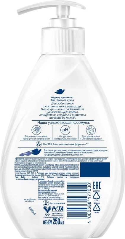 Dove Крем-мыло для рук и тела «Красота и уход»