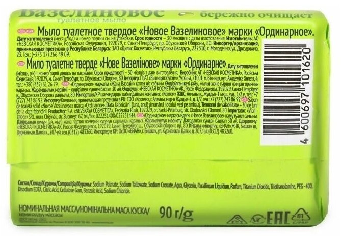 Невская Косметика Мыло туалетное «Новое вазелиновое»