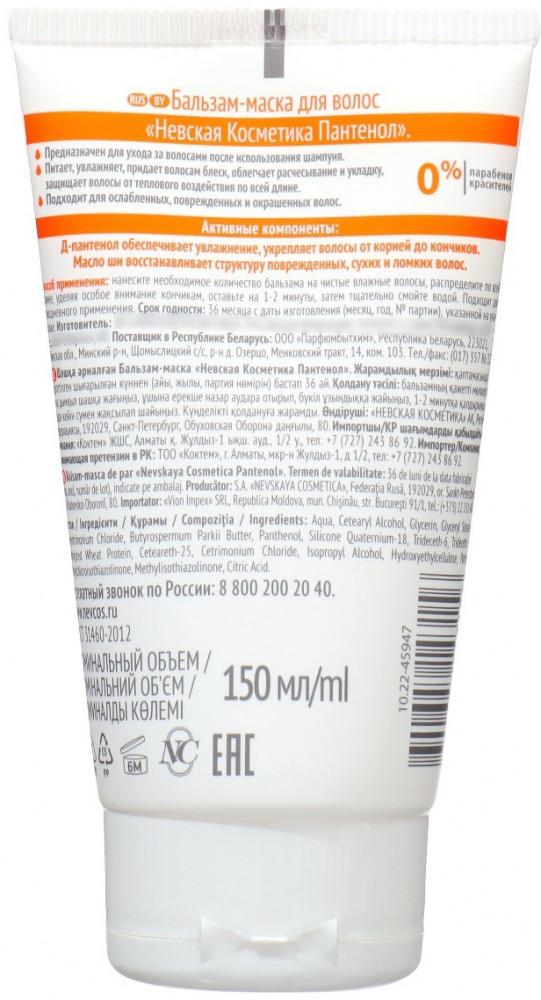Невская Косметика Бальзам-маска для волос с пантенолом
