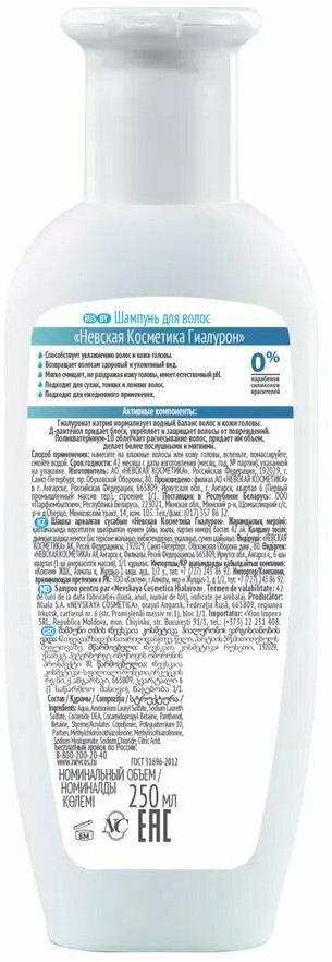 Невская Косметика Шампунь для волос увлажняющий и придающий объем «Гиалурон»