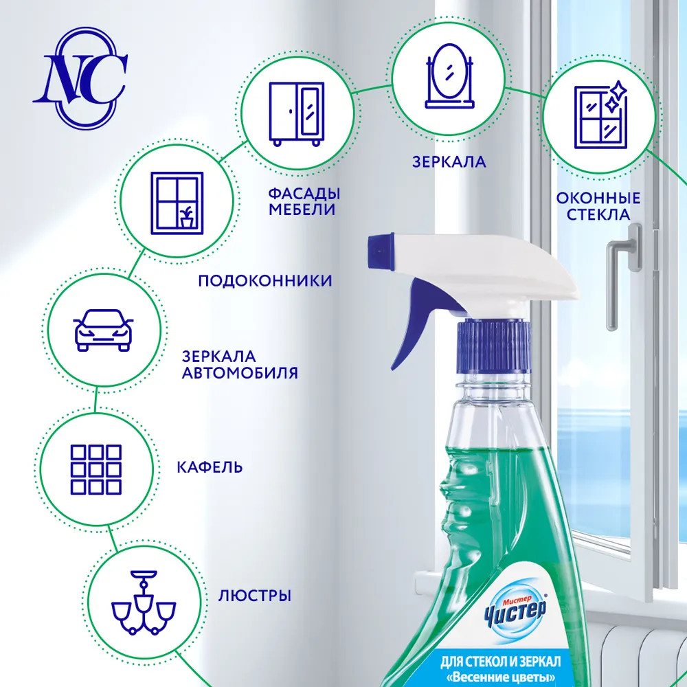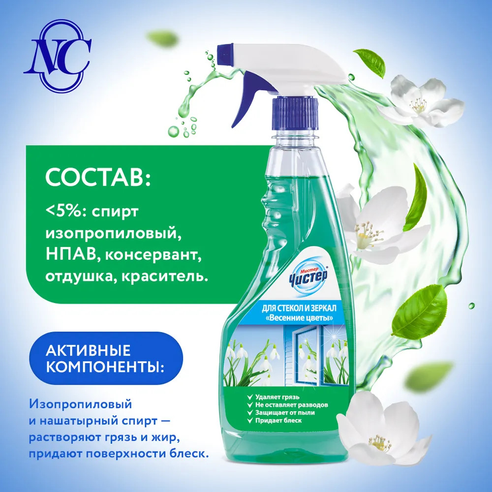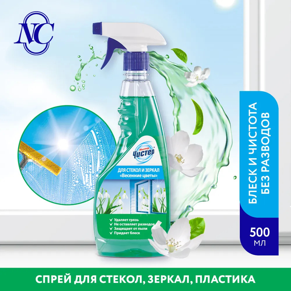 Мистер Чистер Средство для мытья стёкол и зеркал «Весенние цветы»