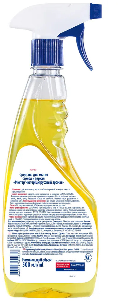 Мистер Чистер Средство для мытья стёкол и зеркал «Цитрусовый аромат»