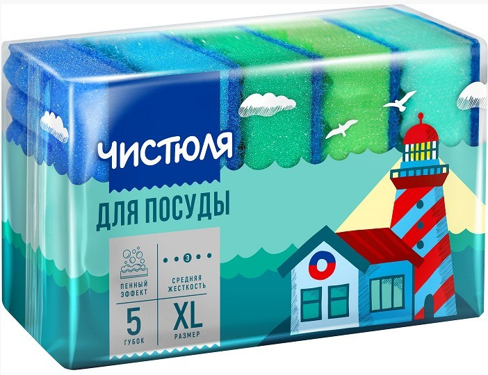 Чистюля Набор губок для мытья посуды «Пенный эффект»-15% +20 размер прочность абразив