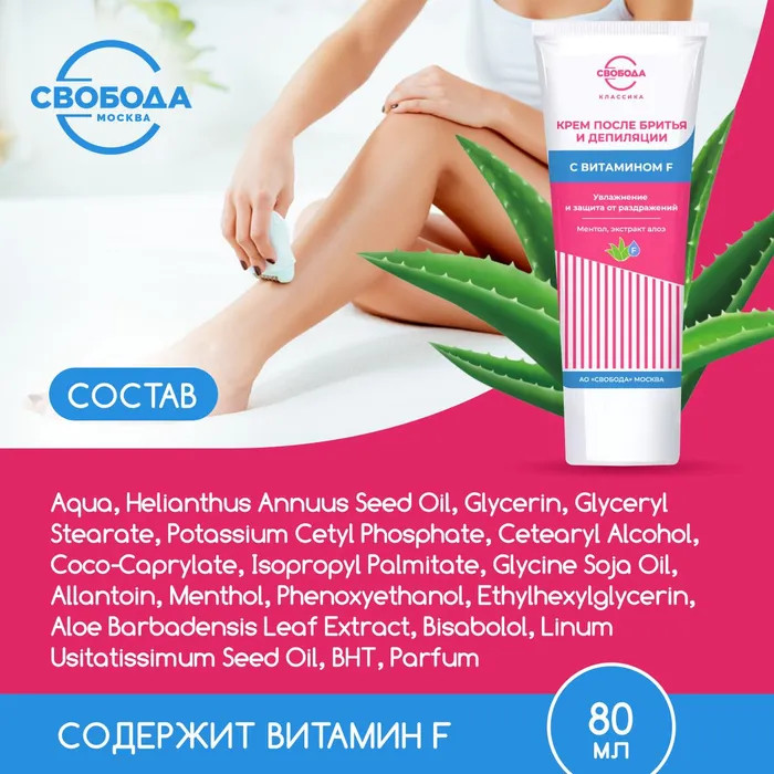 Svoboda Крем после бритья с витамином Fмягкость увлажнение заживление витамин F новый В данный момент этот товар отсутствует в продаже. Возможно, у нас найдется аналогичный или похожий товар здесь. Крем после бритья и депиляции с витамином F увлажняющий комплексно ухаживает за кожей. Он увлажняет и смягчает кожу, раздраженную после бритья, помогает справиться с воспалениями, освежает и тонизирует. В составе крема содержатся натуральные компоненты. Крем Свобода идеально подходит не только для нормальной, но и для чувствительной кожи. Благодаря эффективности крема используют его не только непосредственно после бритья, но и в качестве дополнительного ухода. |