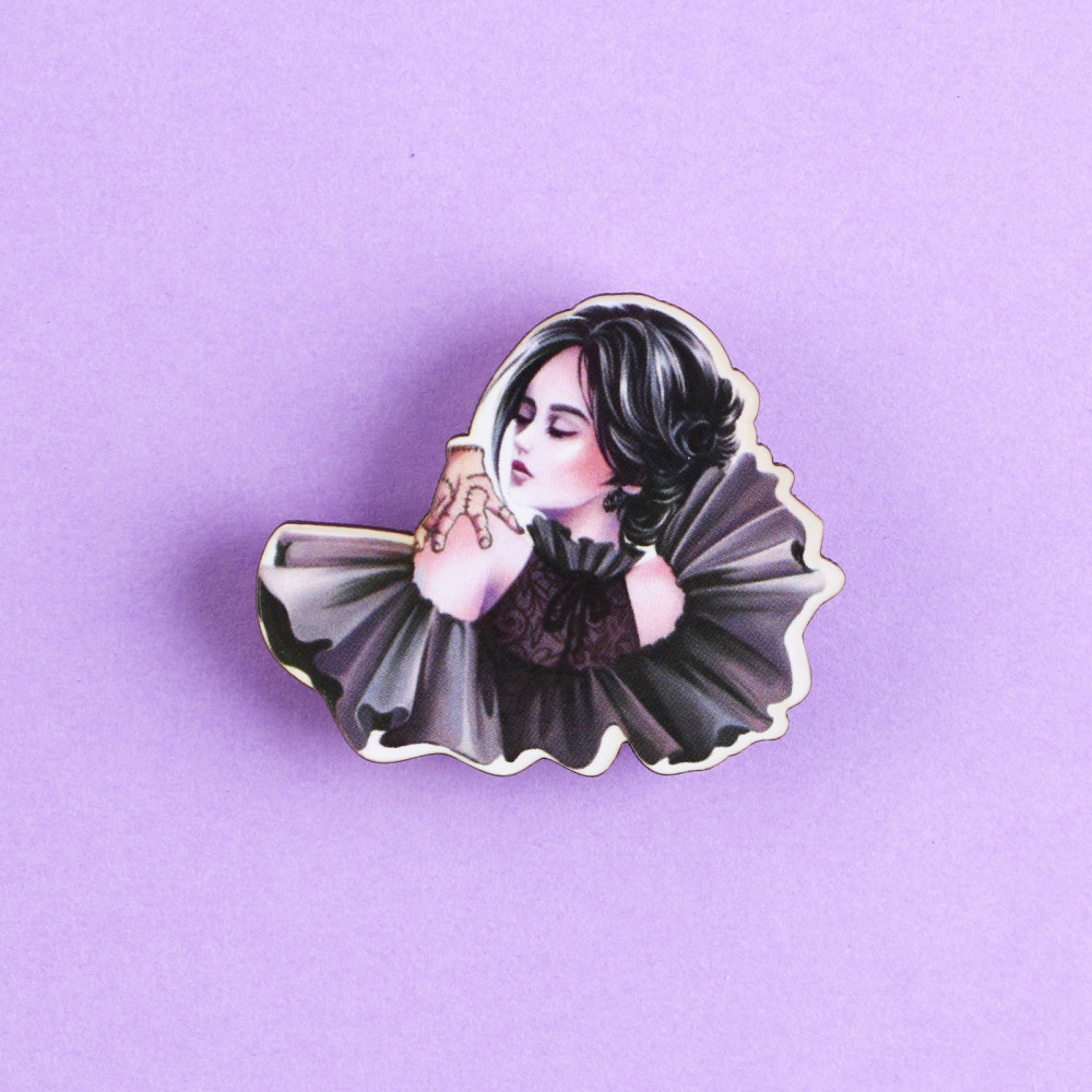 Micio Значок деревянный «Wednesday»В данный момент этот товар отсутствует в продаже. Возможно, у нас найдется аналогичный или похожий товар здесь. Серия: Хэллоуин Значок деревянный «Wednesday» — яркий элемент, который порадует любого. Значок-брошь — отличный подарок на любой праздник. Деревянный значок имеет достаточно широкое применение: его можно крепить на одежду, рюкзак, сумку, шапку, шарф. Значок лёгкий и не оттягивает изделие. Рисунок нанесен с помощью УФ-печати, благодаря этому значок имеет четкое изображение и глянцевую поверхность. Значок устойчив к царапинам, не выгорает на солнце. Крепление значка — булавка. |