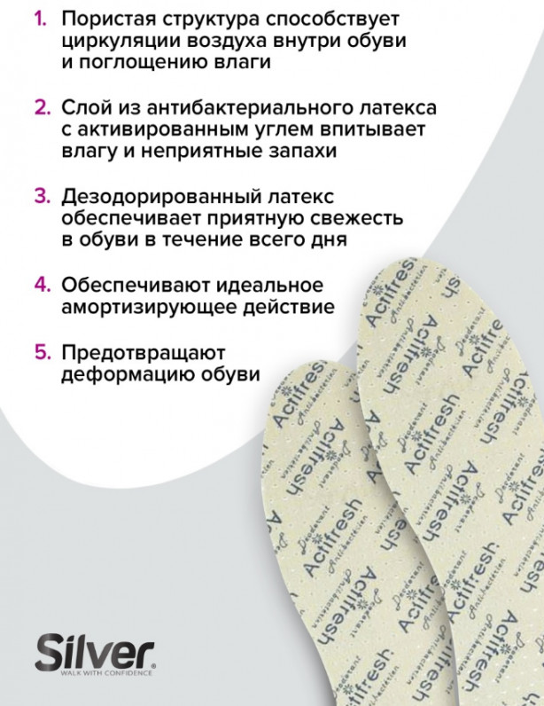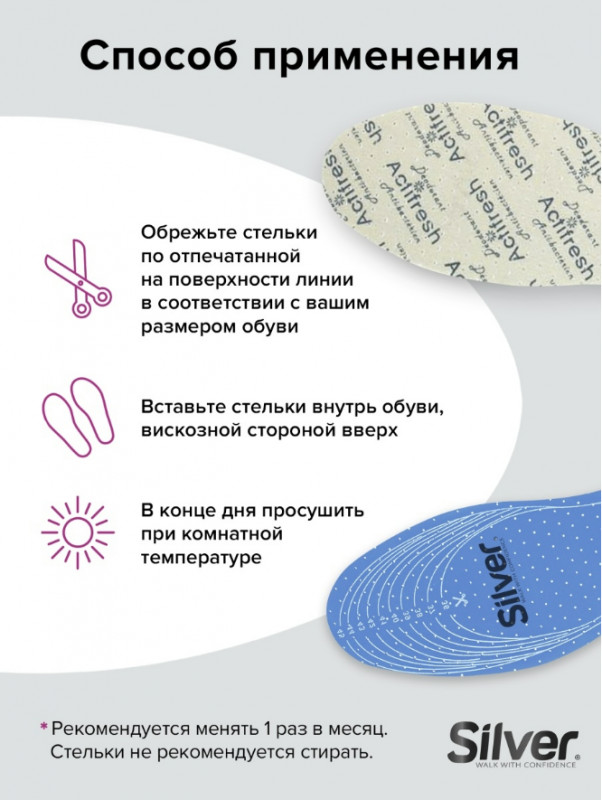 Silver Стельки для обуви парфюмированные «Активная свежесть»-20% +30 удобные работают хорошие долговечность стойкость