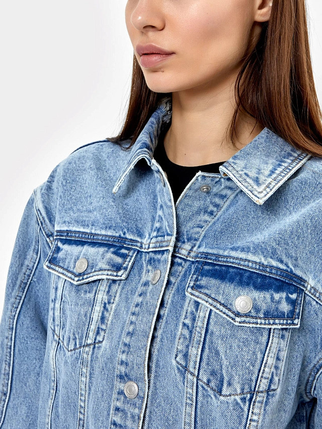 Куртка дополнена интересными деталями, которые придают ей особую привлекательность. К ним относятся накладные карманы на груди, которые не только являются функциональными элементами, но и придают куртке дополнительный шарм. Оверсайз силуэт этого джинсового жакета добавляет шика и элегантности. Она предлагает безграничные возможности для создания интересных и стильных образов. Вы можете носить ее с джинсами или юбками, сапогами или кроссовками — все зависит от вашего настроения и ситуации. Оверсайз джинсовка для женщин — это не просто одежда, это стильный акцент, который подчеркнет вашу индивидуальность. В ней вы будете чувствовать себя уверенно и модно, привлекая восхищенные взгляды.