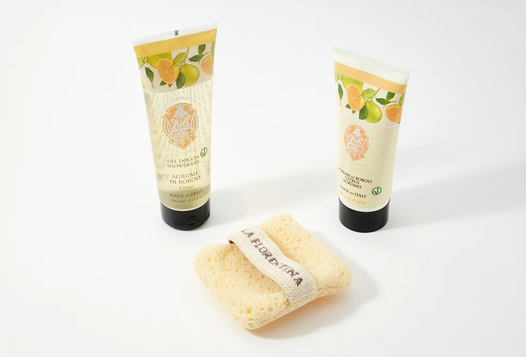 Гель для душа: вода, натрия кокетсульфат, натрия кокоамфоацетат, лаурил глюкозид, глицерин, натрия кокоил глутамат, натрия лаурил глюкозы карбоксилат, коко-глюкозид, глицерил олеат, парфюмерная отдушка, масло плодов оливы, бензоат натрия, сорбат калия, диацетат глутамата натрия, лимонная кислота, линалоол, хлорид натрия.