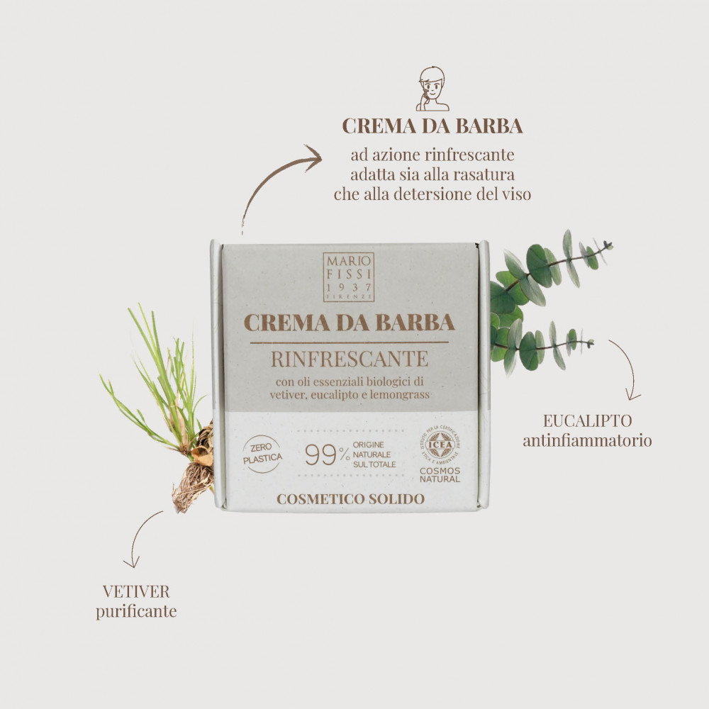 Mario Fissi 1937 Крем-мыло для бритья твердый освежающий с маслами ветивера, эвкалипта и лемонграсса «Crema Da Barba Rinfrescante»В данный момент этот товар отсутствует в продаже. Возможно, у нас найдется аналогичный или похожий товар здесь. Серия: Cosmetico solido Крем-мыло для бритья освежающий — это не только высококачественное натуральное средство для ухода за кожей лица, бородой и усами, но и превосходная пена для бритья, которую удобно взять с собой. Крем-мыло содержит масло оливы и масло сладкого миндаля, которые смягчают кожу и волосы, предотвращают появление раздражений и несовершенств, облегчают укладку и бритье. Масла ветивера и лемонграсса стимулируют кровообращение, улучшают питание волосяных фолликул и ускоряют рост волос, делая их крепче, здоровее и придавая им здоровый вид и блеск. Масло эвкалипта дарит продолжительное ощущение свежести, регулирует работу сальных желёз и обладает превосходным антисептическим эффектом. |