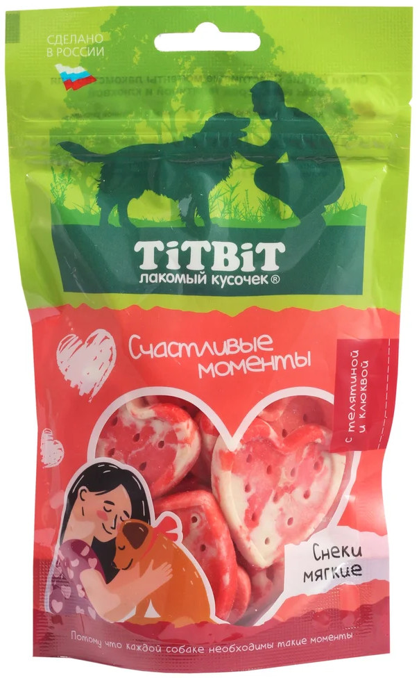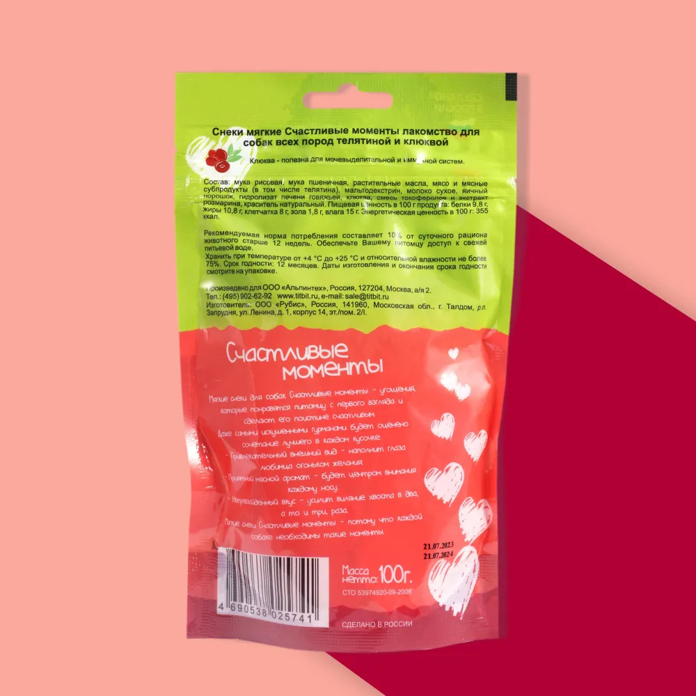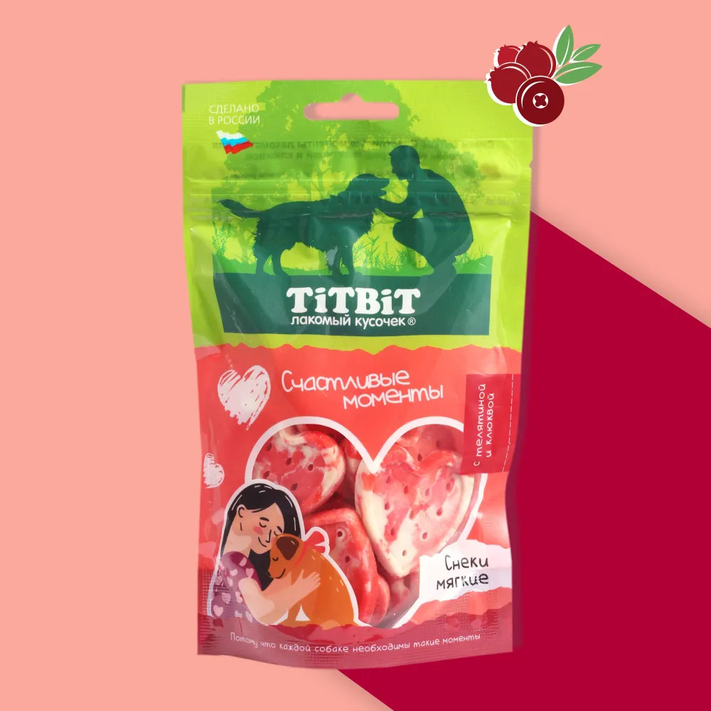 TiTBiT Лакомство для собак всех пород «Снеки мягкие с телятиной и клюквой «Счастливые моменты»