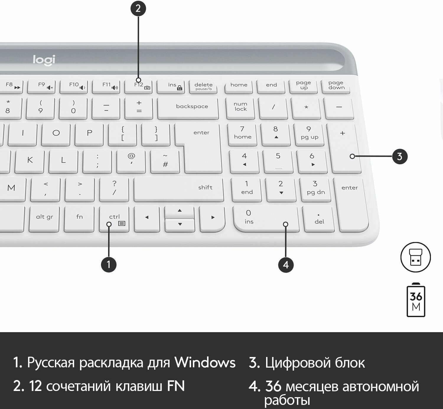 Несмотря на компактный размер, клавиатура предоставляет полноценную раскладку, в том числе 12 функциональных клавиш и цифровую панель. Мышь, благодаря плоской форме, отлично помещается и в кармане, и в сумке для ноутбука. Небольшой размер устройств позволяет с комфортом расположиться с ними даже на краешке стола, а мышь можно вообще всегда носить с собой.