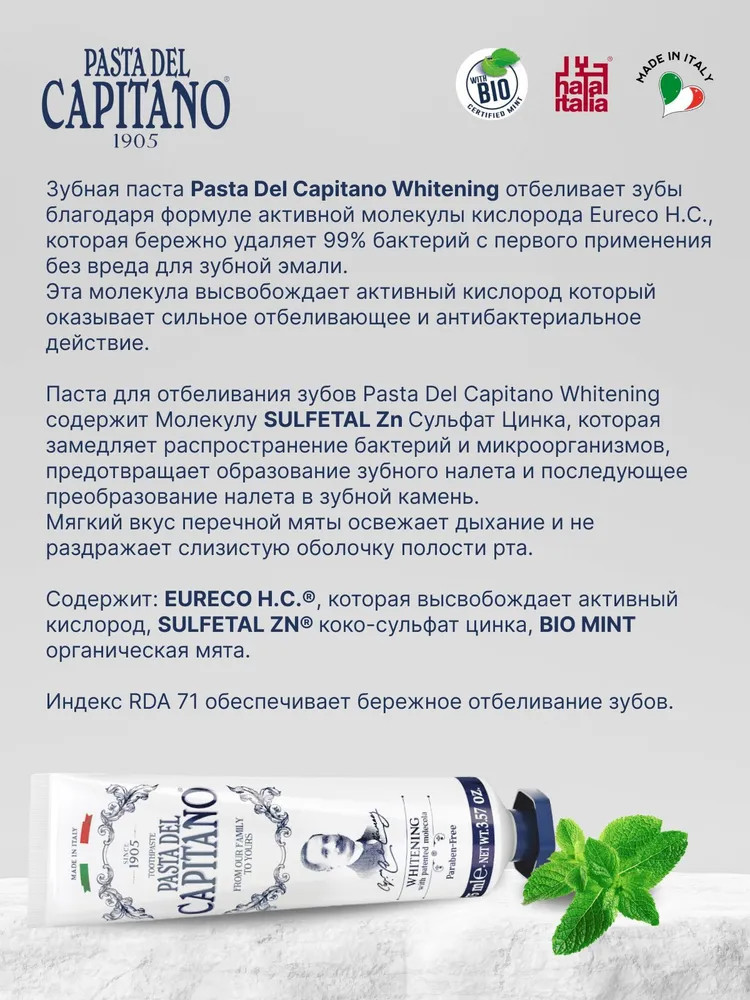 Pasta Del Capitano Зубная паста отбеливающая «Whitening with patented Molecula»