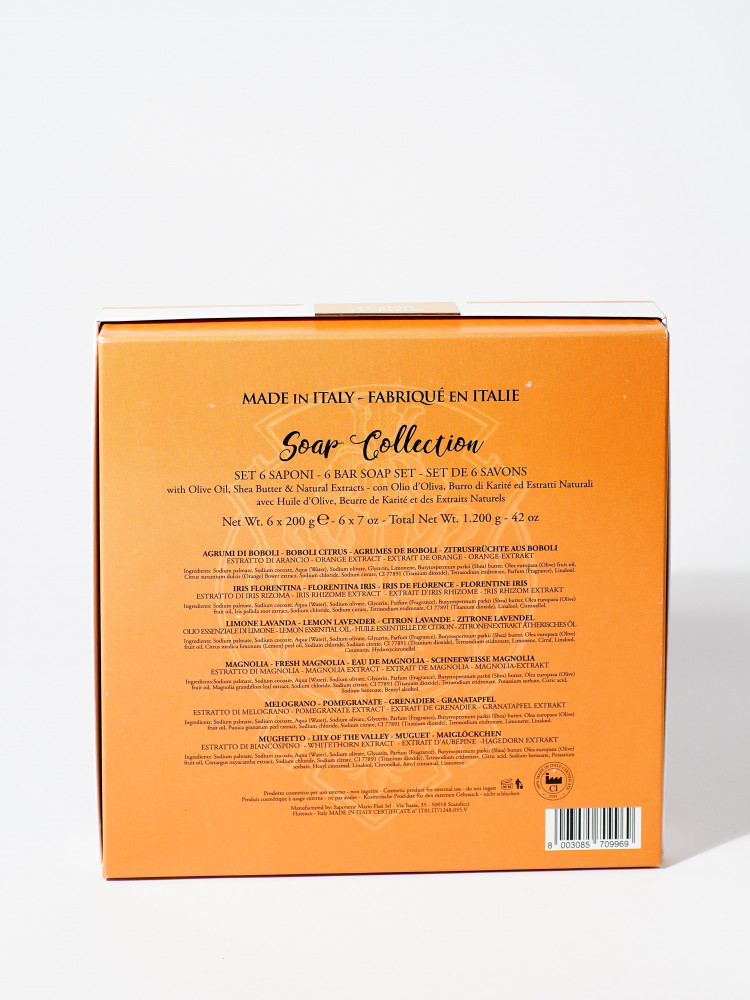 Мыло «Florentina iris. Флорентийский ирис»: sodium palmate, sodium cocoate, aqua (water), sodium citrate, tetrasodium etidronate, cl 77891 (titanium dioxide), linalool, citronellol, fruit oil, iris pallida root extract, sodium chloride.