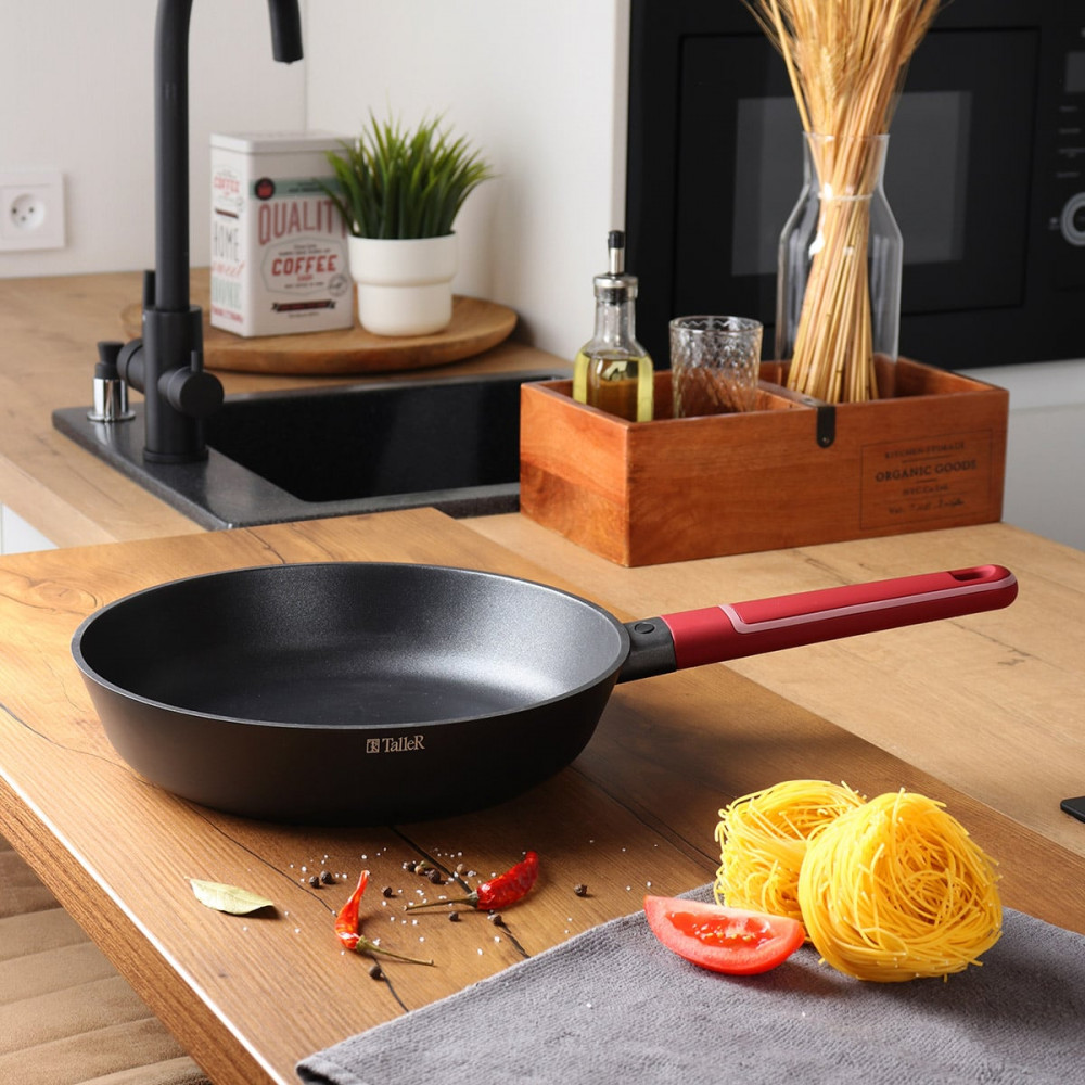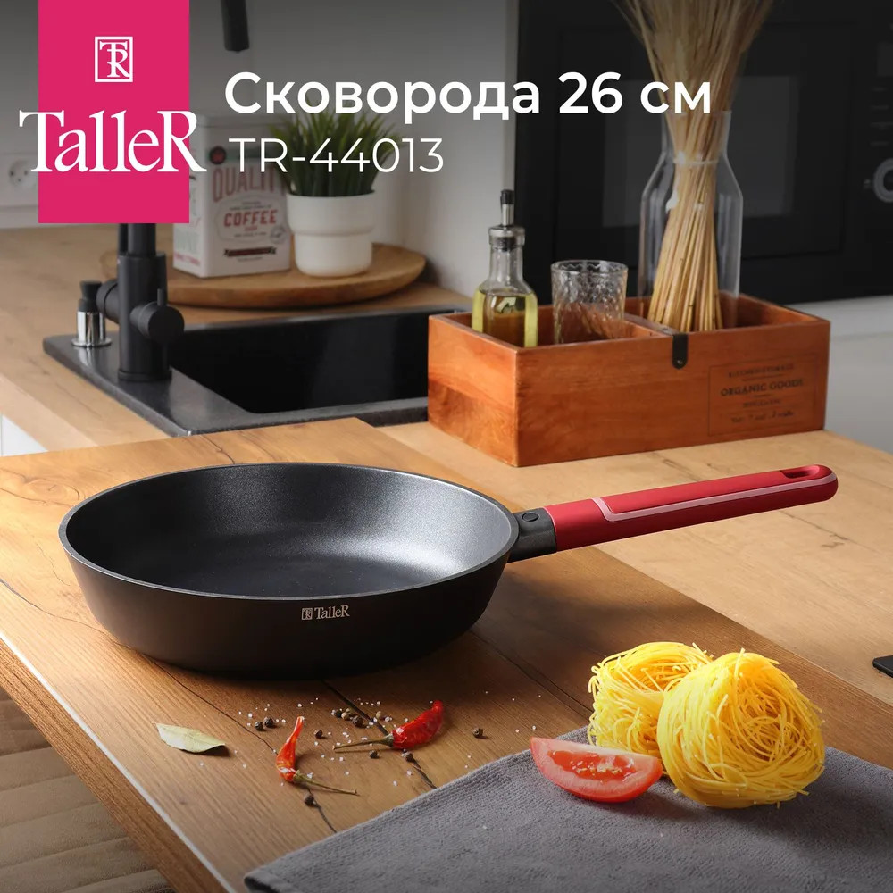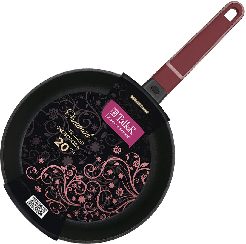 Сковорода TalleR TR-44013 «Орнамент» 26 см. Материал корпуса — литой алюминий. Внешнее покрытие устойчиво к высоким температурам и загрязнениям и долго сохраняет превосходный внешний вид. Двухслойное антипригарное покрытие Whitford Xylan Plus позволяет готовить пищу с минимальным количеством масла. Антипригарное покрытие не содержит PFOA.