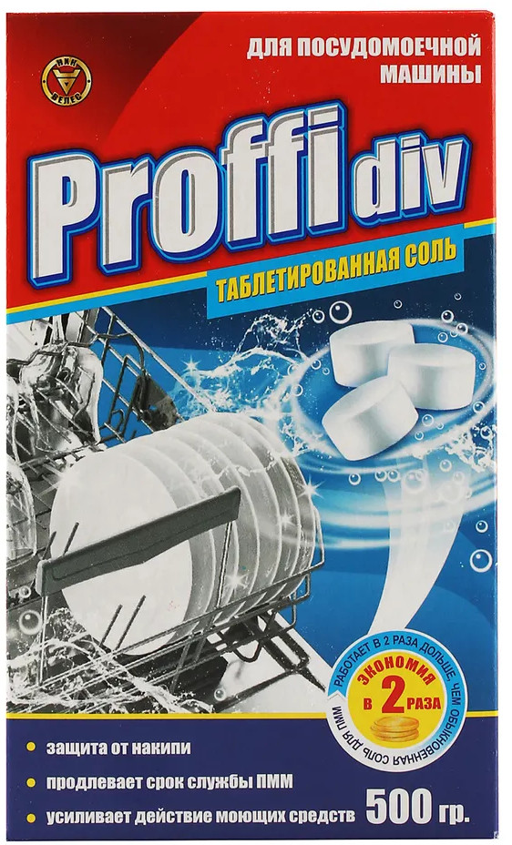 Таблетированная соль для посудомоечной посуды. Обеспечивает высокую эффективность умягчения воды в посудомоечной машине и более чем в 2 раза экономичнее обычной гранулированной соли при использовании.