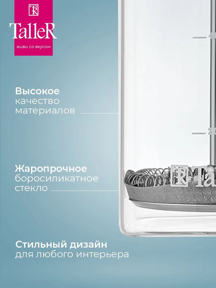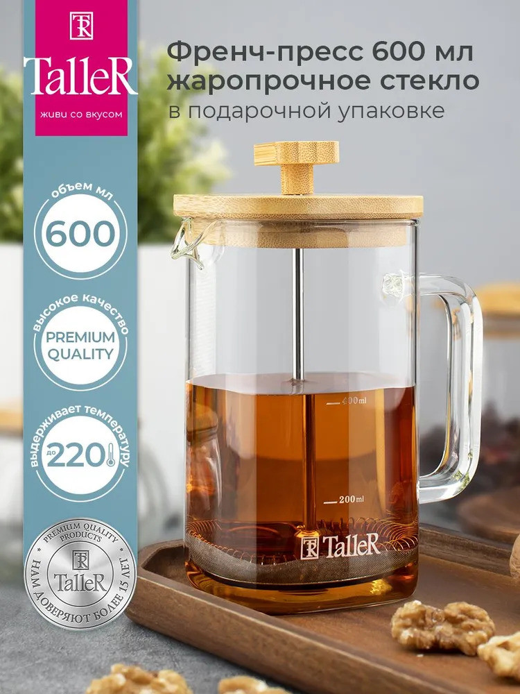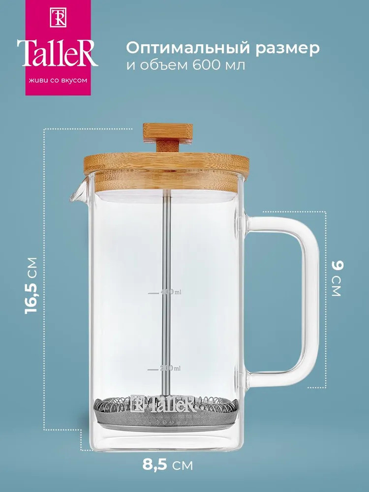 Колба квадратной формы со скругленными углами придает чайнику оригинальный вид. Идеален для приготовления кофе, чая, тонизирующих и расслабляющих напитков. Для сохранения наилучшего внешнего вида френч-пресса рекомендуется ручная мойка.