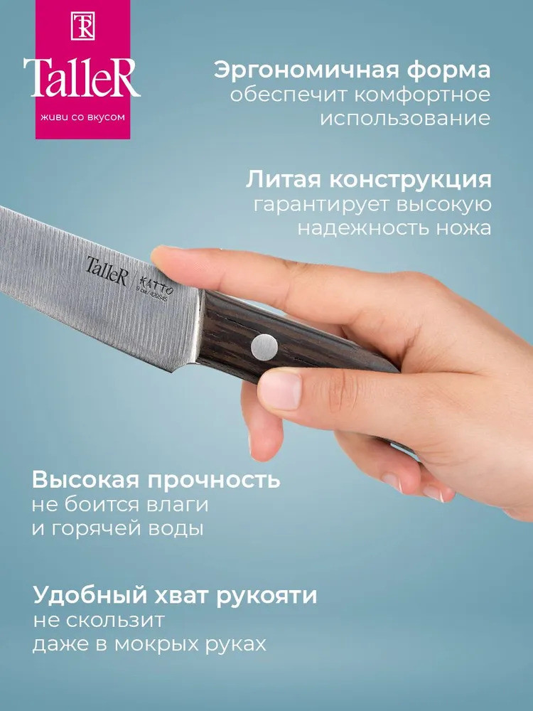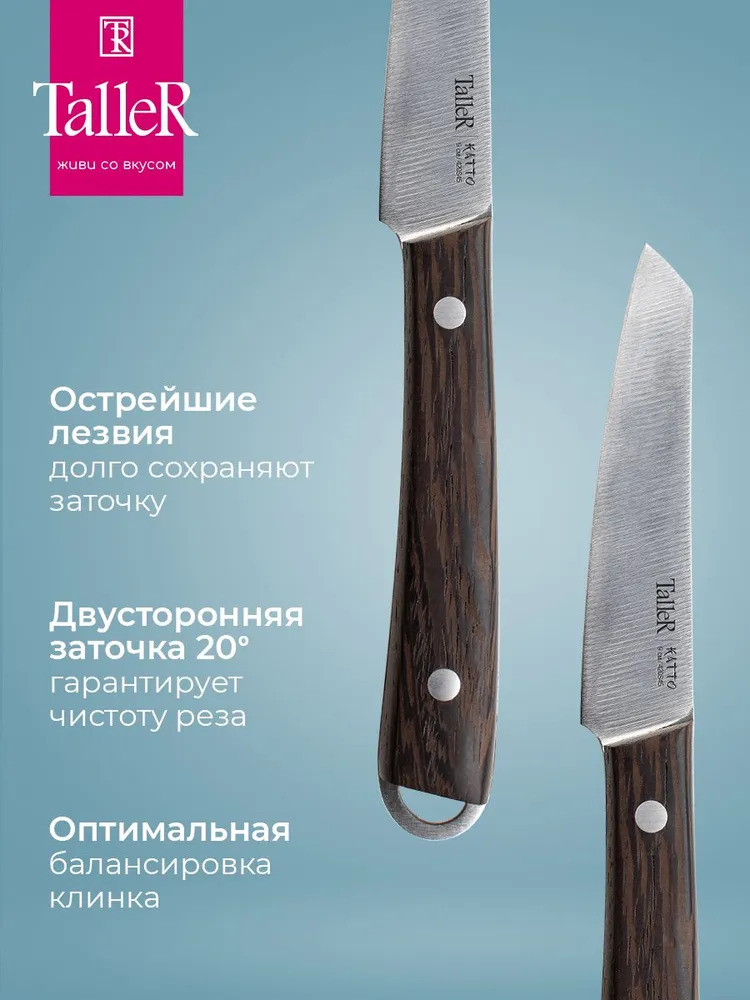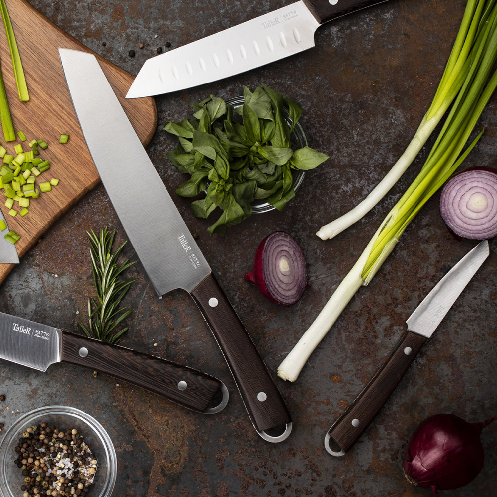 Используйте для заточки точилки TalleR или аналогичные (или точильные камни, мусаты). Рекомендуется ручная мойка.