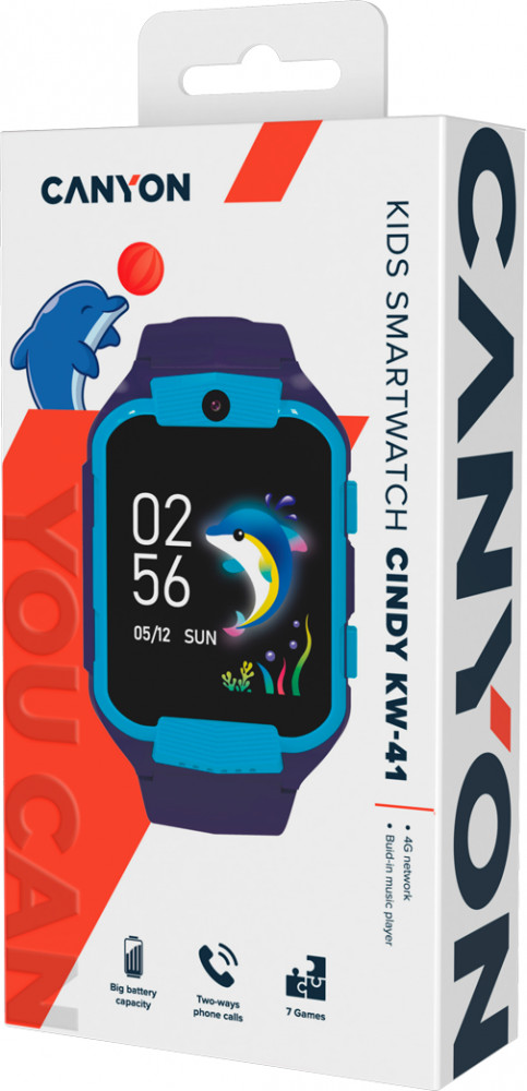 Хотите приобрести удобный гаджет для вашего ребенка? Попробуйте Canyon Cindy. Умные часы KW-41 — это универсальное устройство, разработанное для удовлетворения потребностей детей. Оно не требует подключения к смартфону — отличный выбор, если вы хотите устройство, не отвлекающее внимание. Подключение 4G позволяет проводить двусторонние телефонные звонки и отправлять сообщения, и вы всегда будете на связи. Эти часы водонепроницаемые, имеют большую продолжительность работы от аккумулятора и специальную кнопку SOS — безопасность вашего ребенка для нас приоритет. К тому же, у них есть 512 МБ внутренней памяти для важных вещей. Мы включили и 7 образовательных игр, так что эти часы будут интересными в носке!