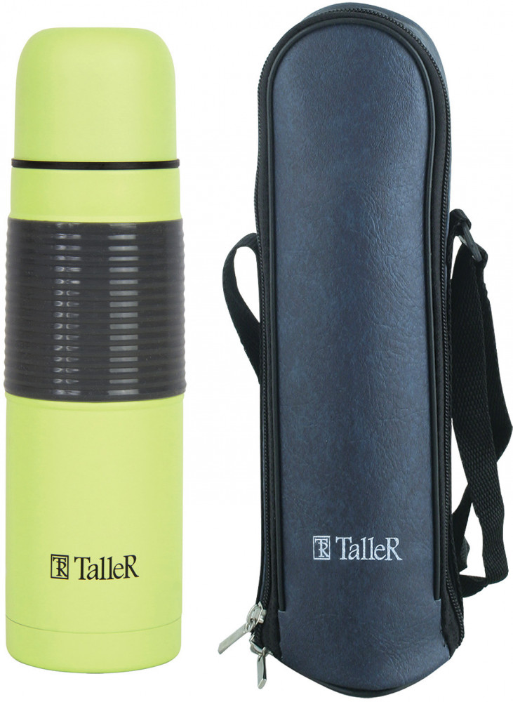 Кнопочный механизм, узкое горлышко, автостоппер, защита от проливания. Завинчивающаяся крышка-стакан. Силиконовый протектор на термосе предотвращает выскальзывание из рук. В комплект входит чехол из эко кожи с ремешком.