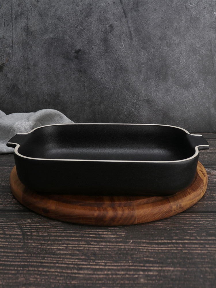 Материал — жаропрочная керамика, покрытая глазурью. По краям формы — белый глазированный кант.