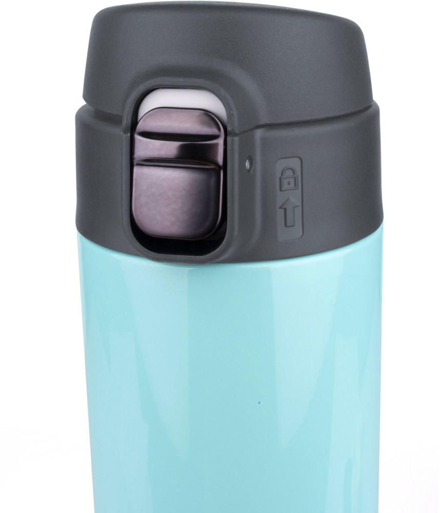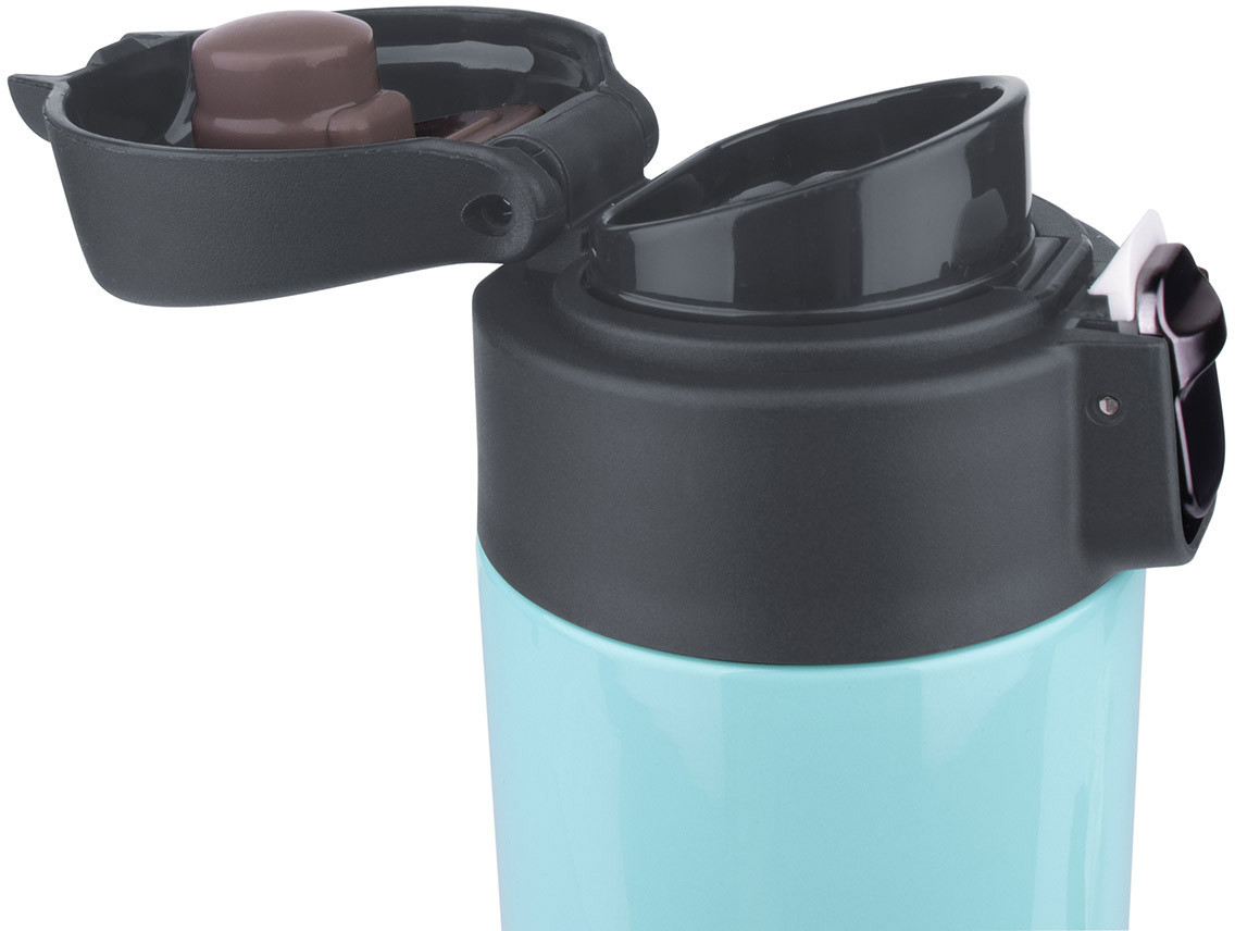 Удобный клапан позволяет пить без откручивания крышки и держать термос одной рукой. Герметичная силиконовая пробка предотвращает потерю тепла, протекание и расплескивание. Кнопка блокировки крышки защищает от открытия крышки. Диаметр горлышка термоса без крышки — 5 см. Внешняя стенка остается холодной, даже если термос наполнен кипятком.