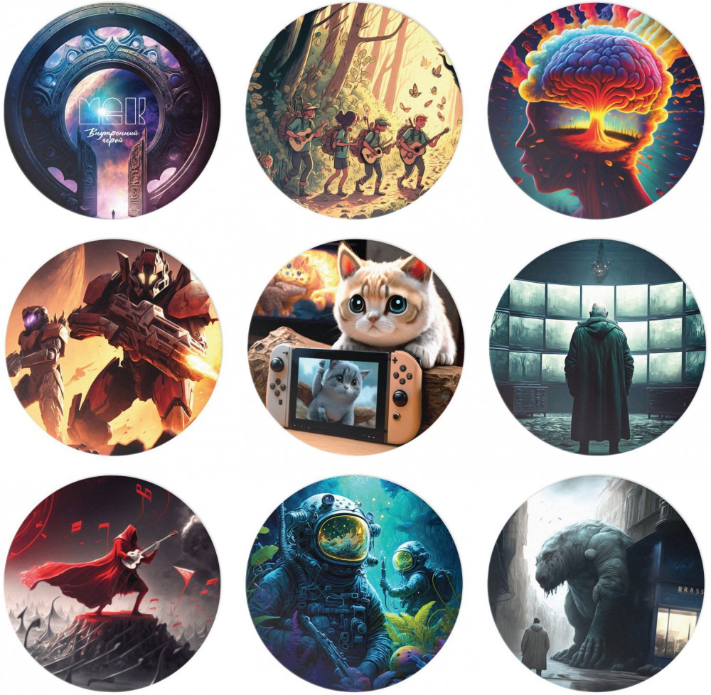 Разнообразная иллюстрация от яркого до моно-глубокого, чувствуется рука ИИ, металлическая упаковка, круглая форма очень удобна