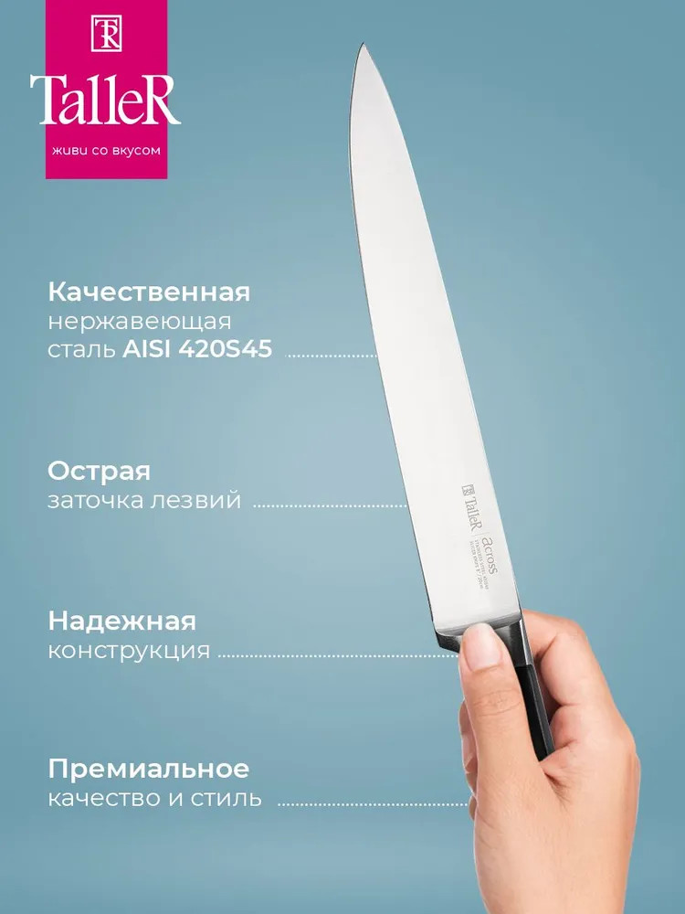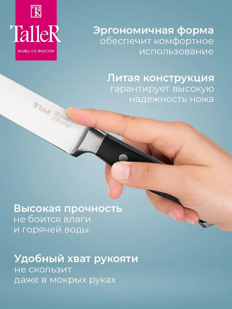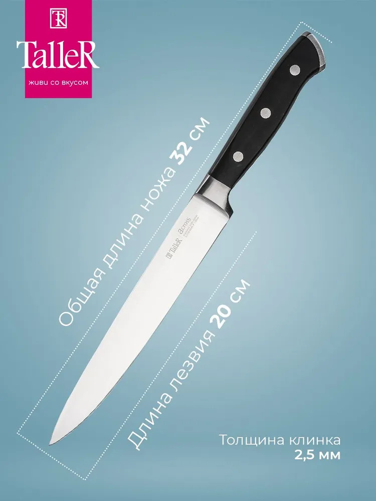 Подходит для нарезки овощей, фруктов и зелени, сырого и вареного мяса, разделки курицы и рыбы. Им легко нарезать арбуз, дыню. Лезвие ножа сделано из твердой коррозионностойкой стали AISI 420S45 (3Cr13).