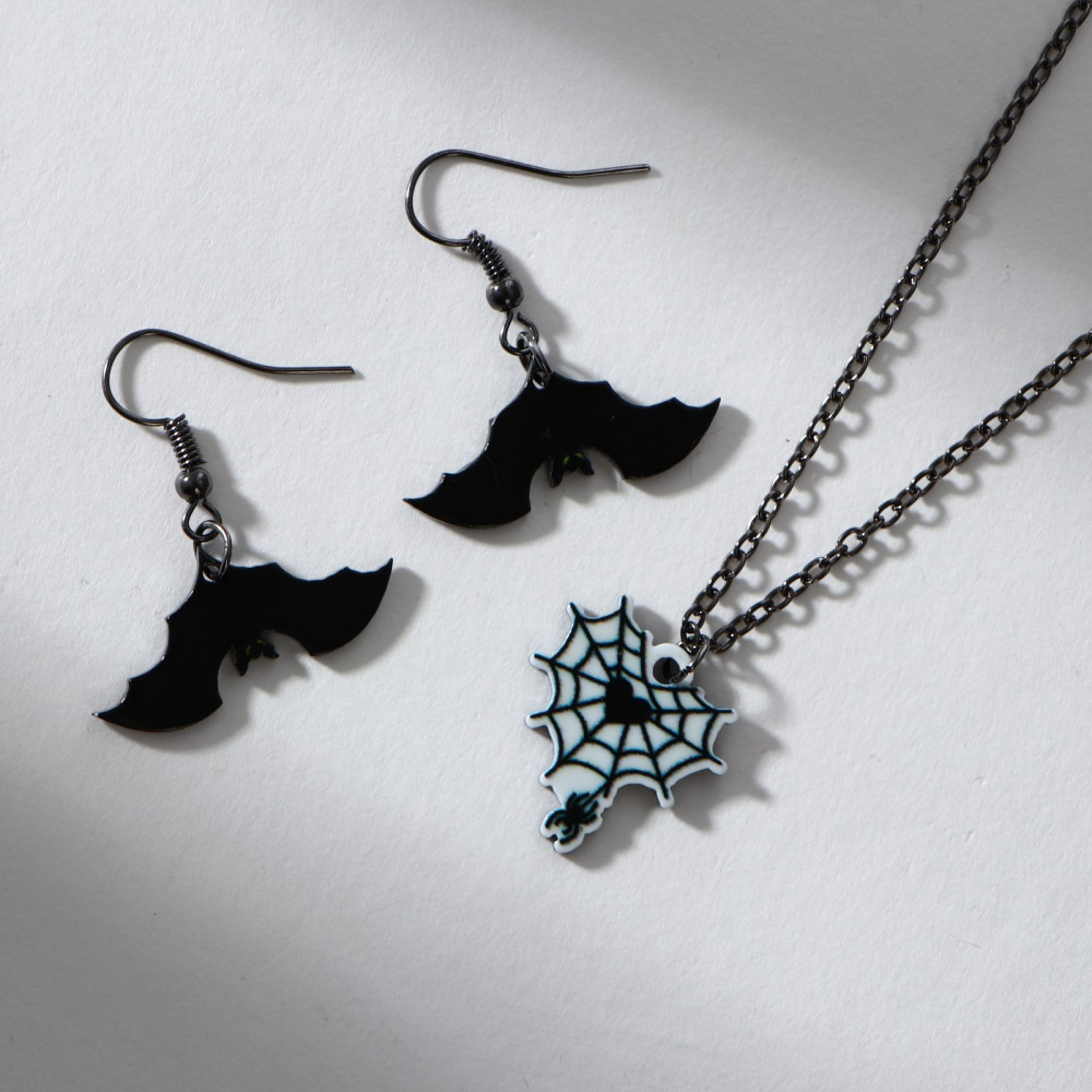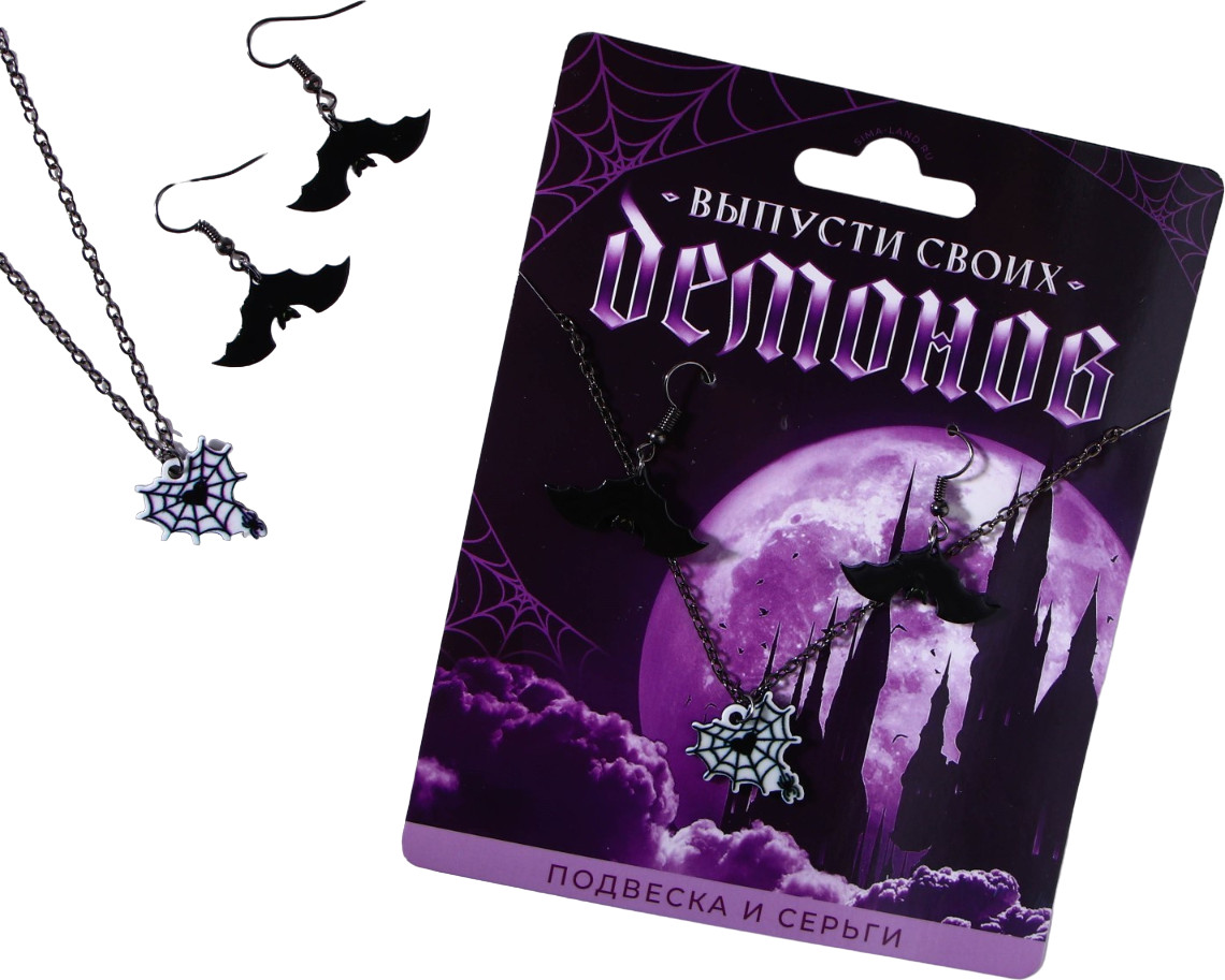 Набор станет прекрасным дополнением для девочки к праздничному образу. Набор аксессуаров который придется по вкусу вашей дочке, подруге или внучке, будет приятным презентом на Хэллоуин или любой другой праздник. В набор входят: серьги и подвеска.