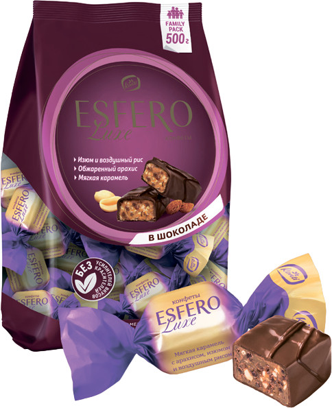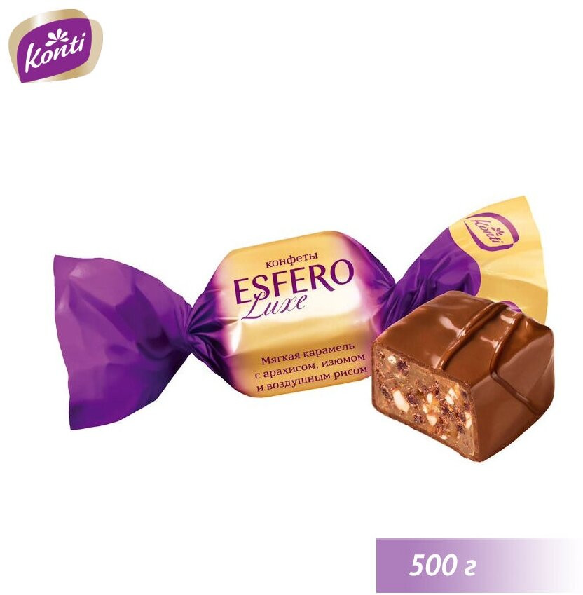 Konti Конфеты с начинкой из арахиса, изюма и воздушного риса в мягкой карамели «Esfero Luxe»