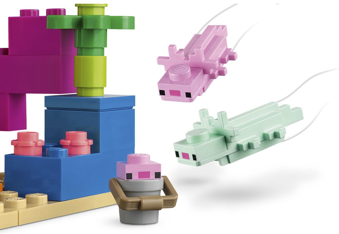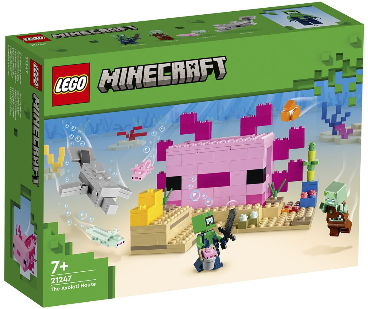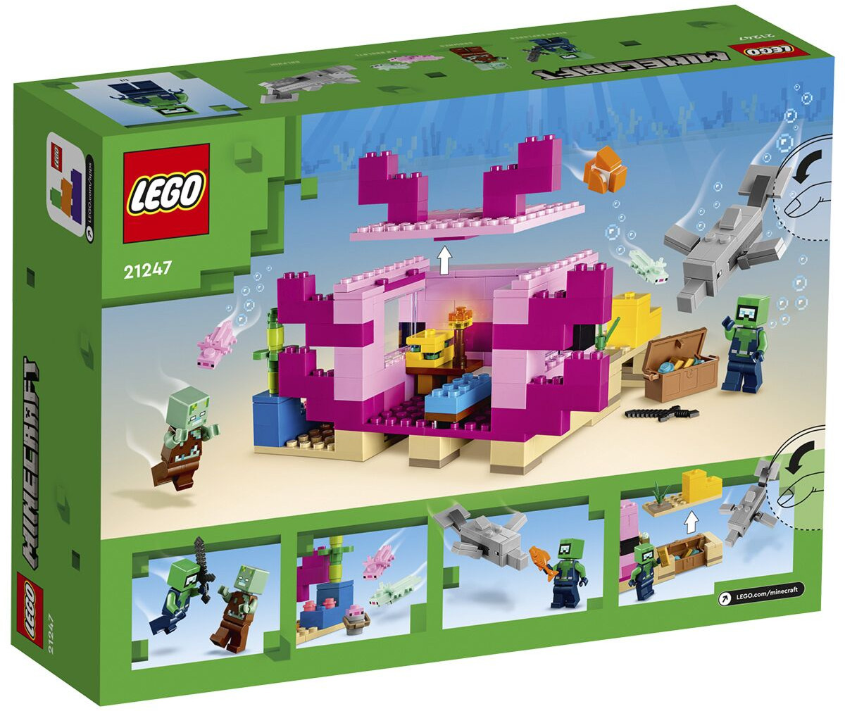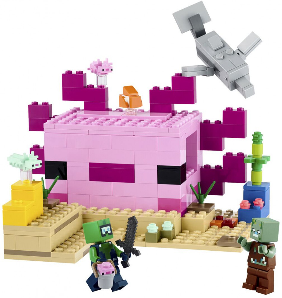 LEGO (ЛЕГО) Конструктор Minecraft 21247 Дом Аксолотля. The Axolotl HouseВ данный момент этот товар отсутствует в продаже. Возможно, у нас найдется аналогичный или похожий товар здесь. Серия: LEGO Minecraft Подарите игрокам Minecraft практические подводные приключения с участием одного из самых волшебных созданий игры — аксолотля. Lego Minecraft До -Аксолотль переносит творческое конструирование и фантастические действия Minecraft в реальный мир для игроков от 7 лет. Дети используют свои навыки игры в Minecraft, чтобы построить огромный, яркий дом в форме популярного аксолотля. Затем они присоединяются к подводному исследователю и отправляются в бесконечные приключения с дельфином, который ищет сокровища, иглобрюшной рыбой, двумя взрослыми аксолотлями, аксолотлем в ведре и спрятанным сундуком с сокровищами. Съемная крыша модели открывает легкий доступ к меблированному интерьеру с плавильной печью и губкой для всасывания утечек воды. Однако в случае подводного зомби игроки должны схватить меч и присоединиться к аксолотлам, чтобы защитить свою глубоководную базу. Если хотите добавить цифровых развлечений, строители могут масштабировать, вращать наборы в 3D и отслеживать прогресс, используя веселое, понятное приложение Lego Builder. |