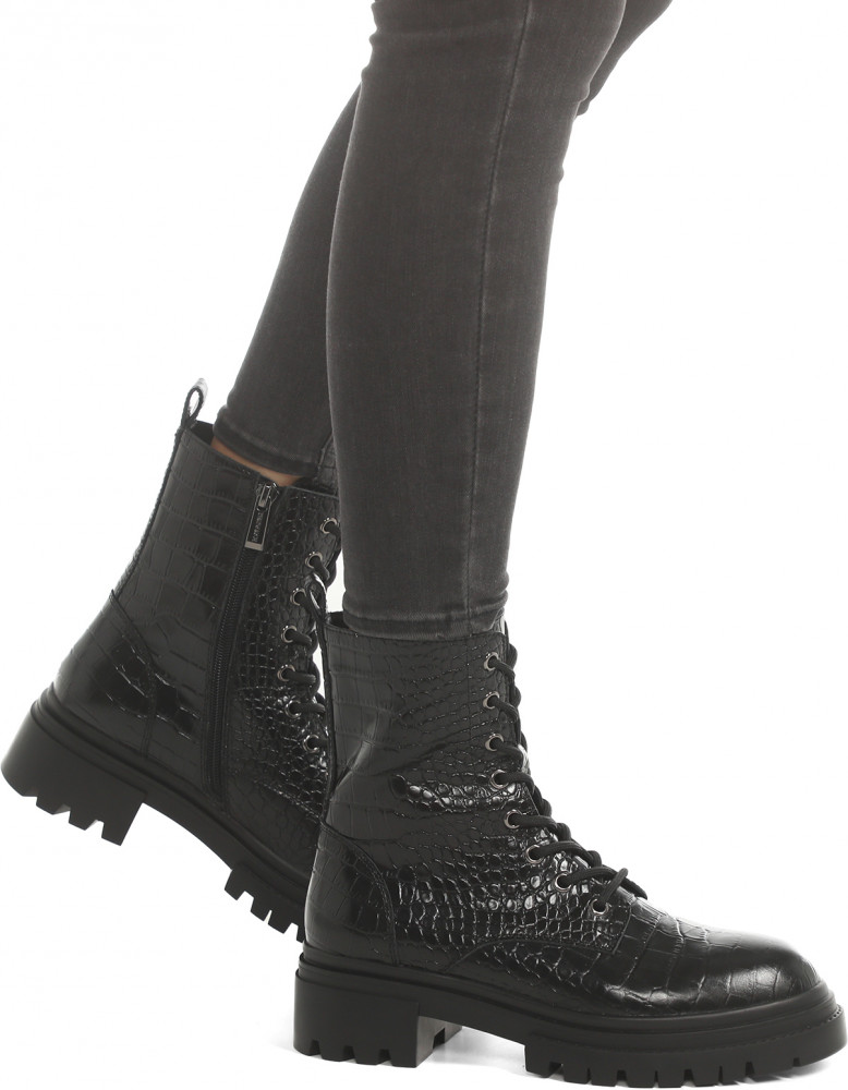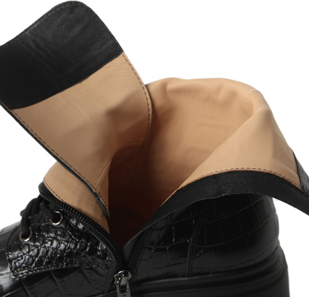 Стильные ботинки превосходно подойдут под любой образ и станут неповторимым завершением Вашего стиля. Верх модели выполнен из натуральной кожи — прочного и эластичного материала, который быстро садится по ноге и мягко облегает стопу. В обуви будет комфортно с первого дня. Подкладка и стелька из натуральной кожи безопасны для стопы и препятствуют появлению мозолей. Материал позволит ногам дышать и меньше потеть. Подошва толщиной 2,5 см сделана из резины. Высота каблука — 4,5 см, высота обуви — 16,5 см. Способ соединения подошвы — клеевой. Обработка материала верха — штампованная.