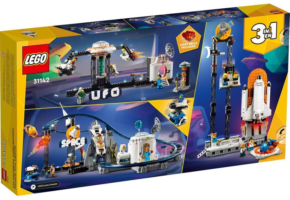 LEGO (ЛЕГО) Конструктор Creator 31142 Космические американские горки. Space Roller CoasterВ данный момент этот товар отсутствует в продаже. Возможно, у нас найдется аналогичный или похожий товар здесь. Серия: Space Любители космоса в возрасте от 9 лет и старше отправятся в увлекательное путешествие по парку развлечений с помощью этой высокодетализированной космической горки Lego Creator «Космические американские горки». Игровой набор включает в себя извилистую трассу американских горок с 3 движущимися тележками для веселых покатушек, которые проносятся мимо декоративной космической ракеты, моделей Сатурна и Земли, лунной базы и падающей звезды. Также есть классный метеор со светлым кирпичом, который можно подсвечивать, плюс 5 минифигурок. 3 различных аттракциона — любители космоса могут построить 3 разных аттракциона аттракционы в парке: космические американские горки, подвесная башня и карусель. Пять минифигурок — в набор входят астронавт, папа и 2 ребенка, ученый и младенец, астронавт. Дети могут менять наряды персонажей, чтобы создать новые забавные образы. |