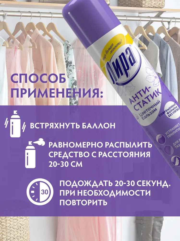 Лира Антистатик для одежды-25% +32 аромат антистатик не душит