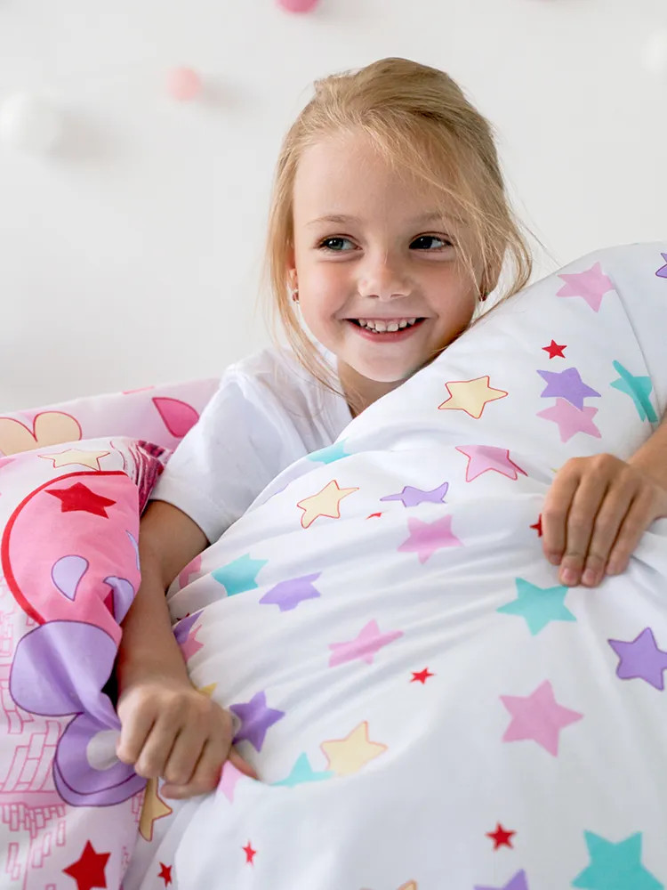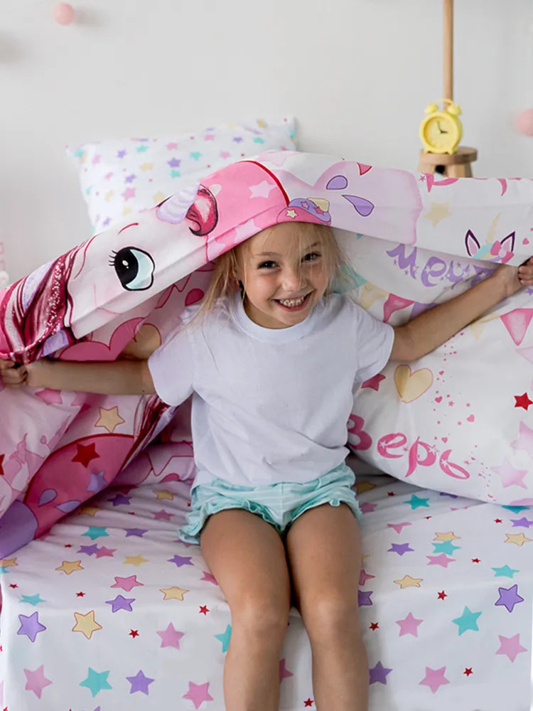 Рисунок яркий. Ткань довольно плотная, но не жесткая. Ребенку нравится. Единственное стоит учесть, что рисунок идет так, словно пододеяльник сшили из одной полосы ткани, закольцевав её. Это не фатально, но иногда придется одеяло крутить, чтобы уложить рисунком сверху вниз.