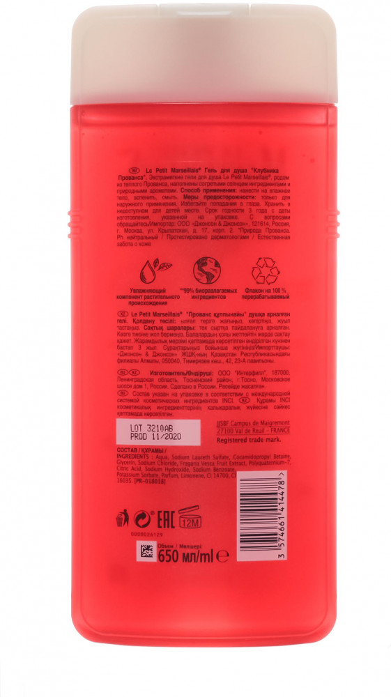 Le Petit Marseillais Гель для душа «Клубника»