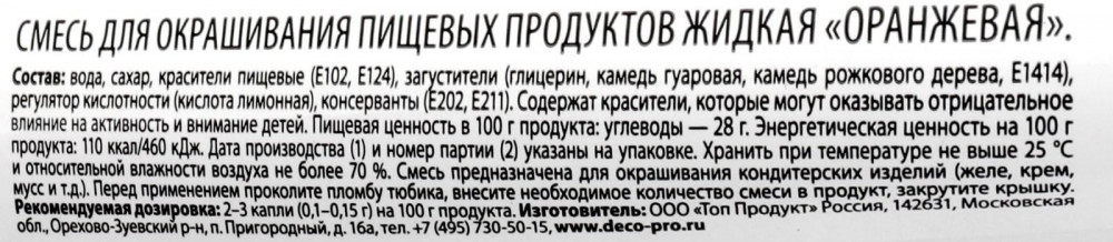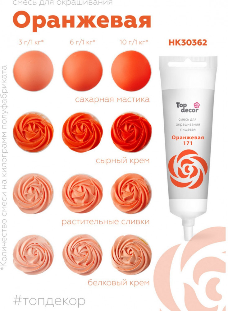 Топ декор Краситель пищевой гелевый, 171 Оранжевый-25% +47