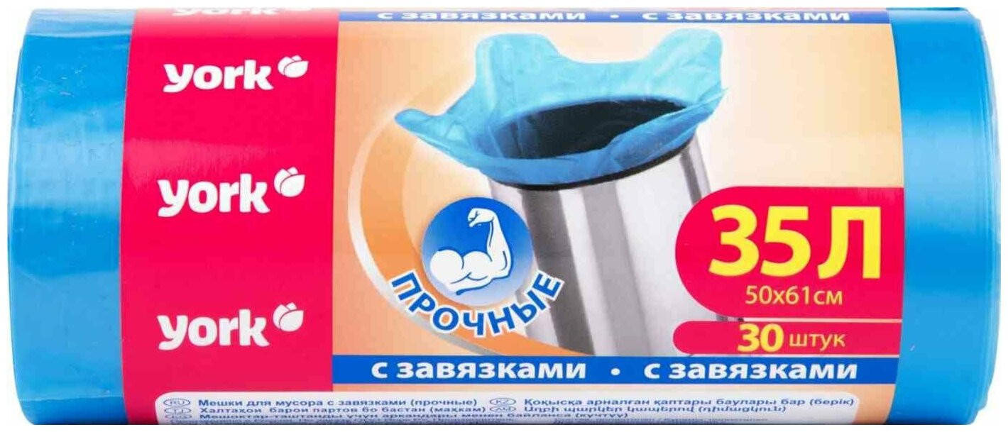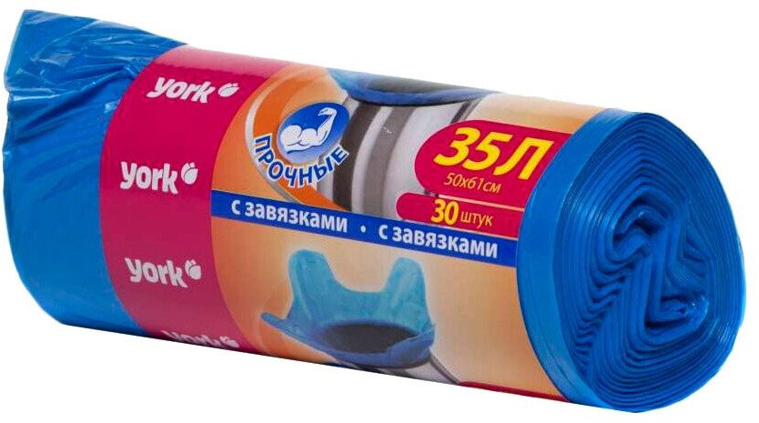 YORK Мешки для мусора с завязками «Прочные»-20% +24 прочные удобные завязки подходящий размер выдерживают вес удобны в использовании