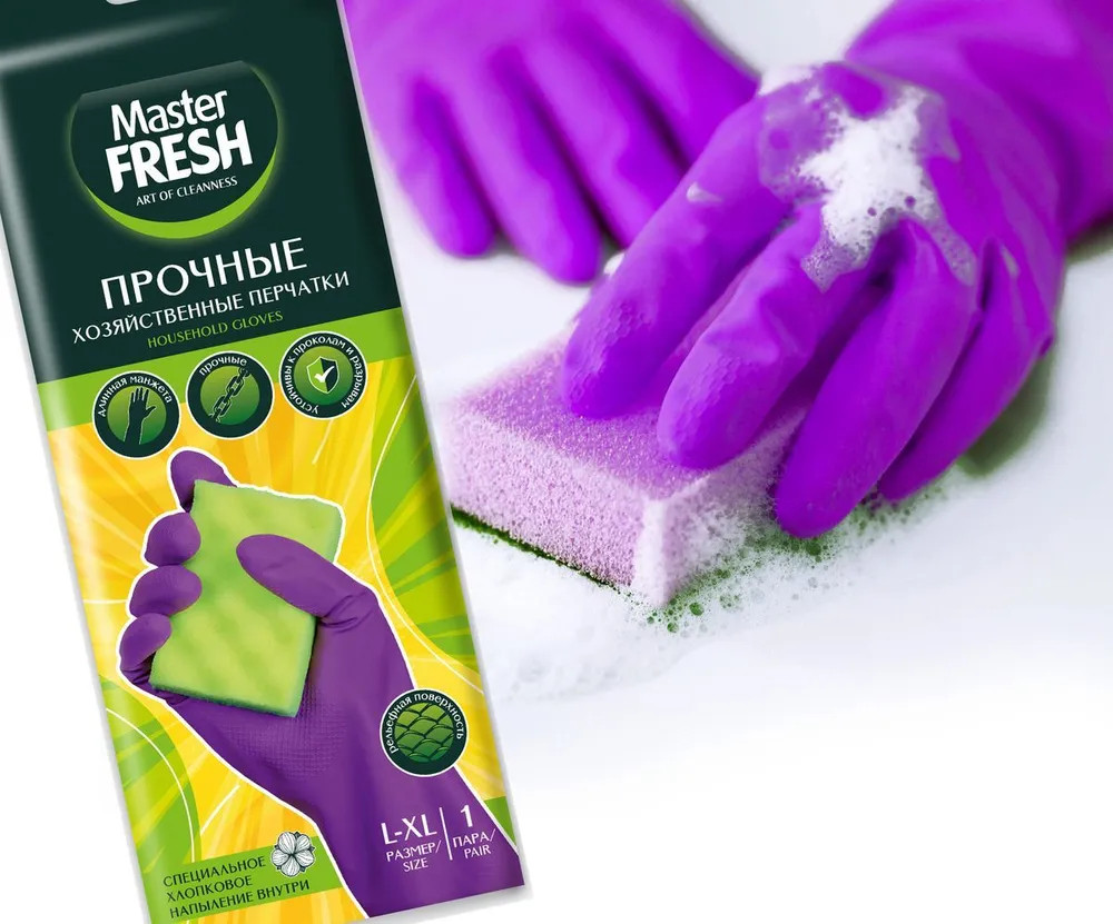 Master Fresh Перчатки хозяйственные латексные с хлопком «Прочные»