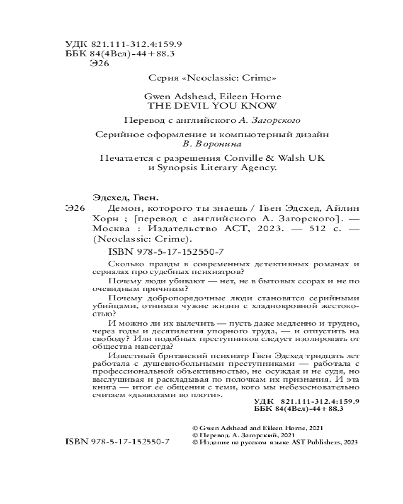 💳 Оплатить за товар можно при получении 🇰🇿 Есть бесплатная доставка по Казахстану от 1 дня 🎁 Копите бонусы с каждой покупки Серия: Neoclassic: Crime Сколько правды в современных детективных романах и сериалах про судебных психиатров? |