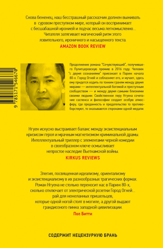 💳 Оплатить за товар можно при получении 🇰🇿 Есть бесплатная доставка по Казахстану от 1 дня 🎁 Копите бонусы с каждой покупки Серия: Corpus В 2016 году роман Вьет Тхань Нгуена «Сочувствующий» стал лауреатом Пулитцеровской премии. |