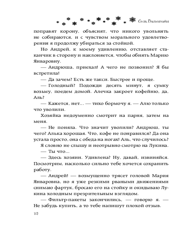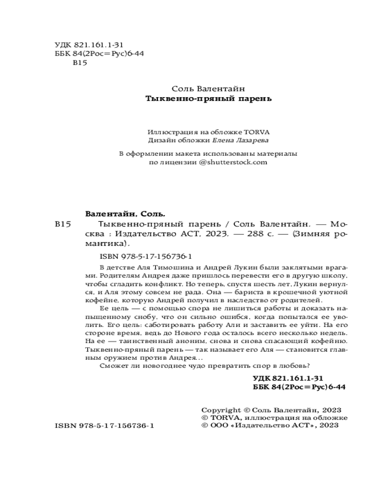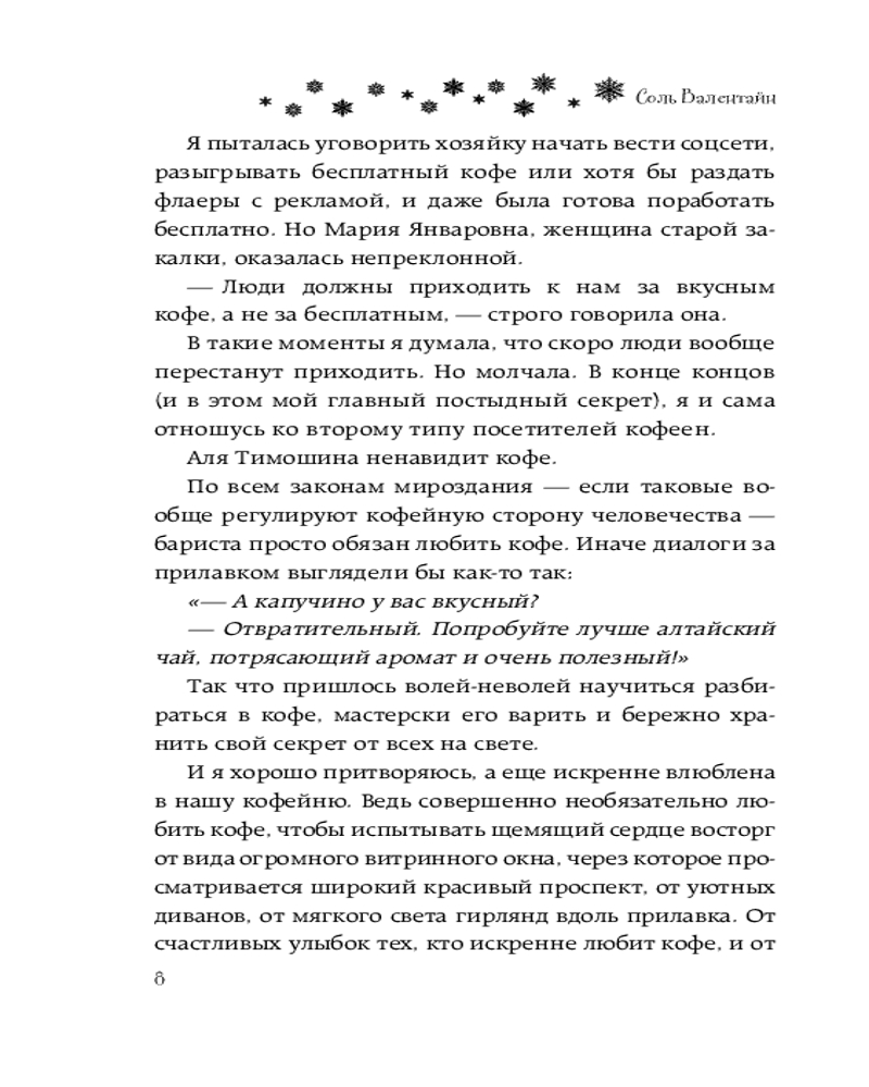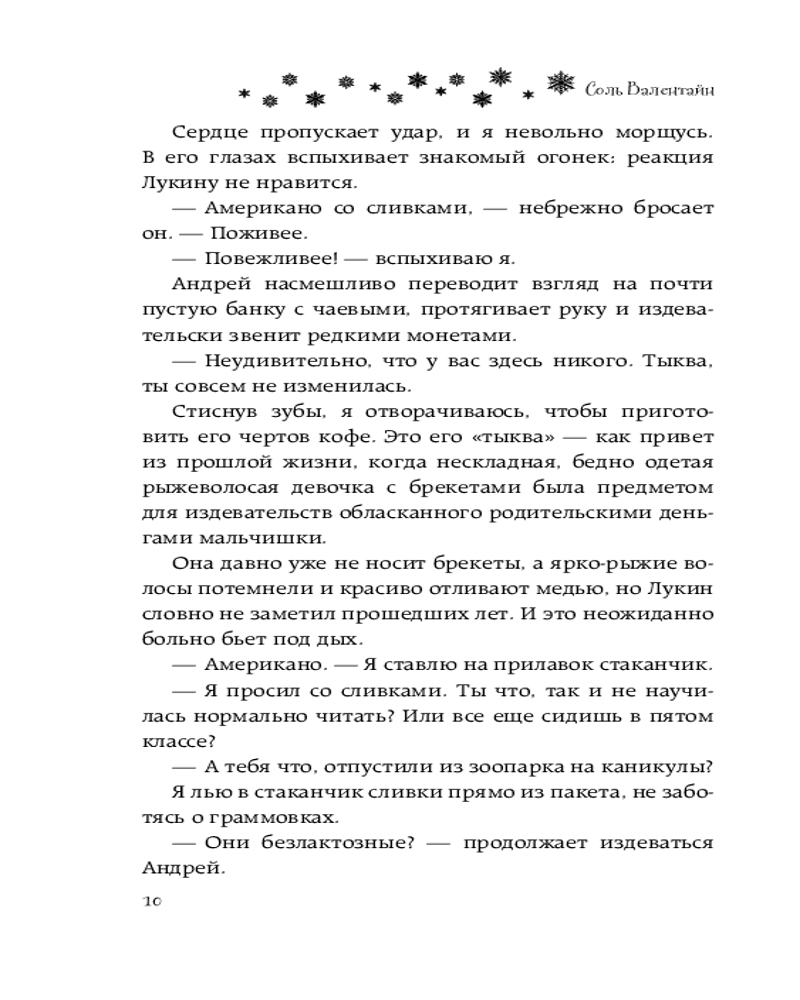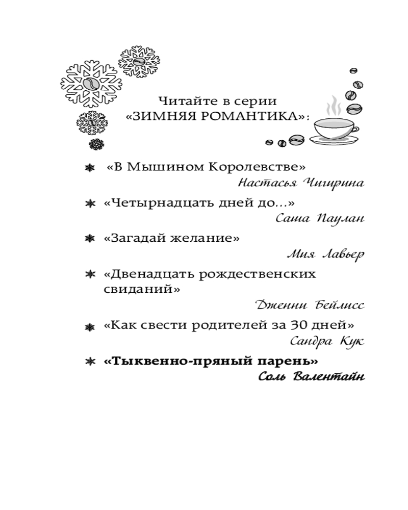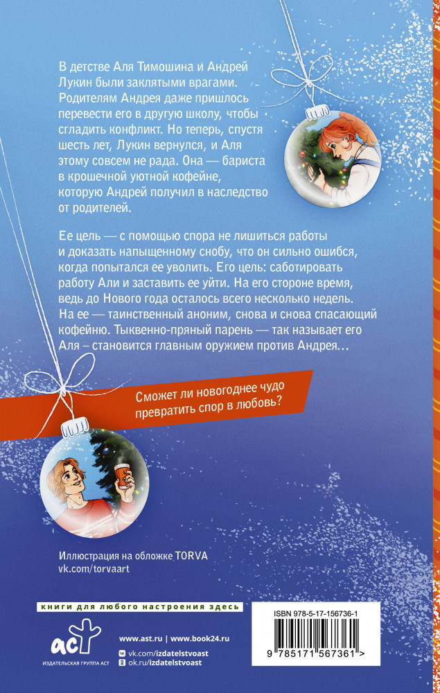 💳 Оплатить за товар можно при получении 🇰🇿 Есть бесплатная доставка по Казахстану от 1 дня 🎁 Копите бонусы с каждой покупки Серия: Зимняя романтика В детстве Аля Тимошина и Андрей Лукин были заклятыми врагами. Родителям Андрея даже пришлось перевести его в другую школу, чтобы сгладить конфликт. Но теперь, спустя шесть лет, Лукин вернулся, и Аля этому совсем не рада. Она — бариста в крошечной уютной кофейне, которую Андрей получил в наследство от родителей. |