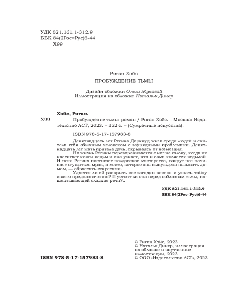 💳 Оплатить за товар можно при получении 🇰🇿 Есть бесплатная доставка по Казахстану от 1 дня 🎁 Копите бонусы с каждой покупки Серия: Сумрачные искусства Девятнадцать лет Регина Дарквуд жила среди людей и считала себя обычным человеком с заурядными проблемами. Девятнадцать лет мать прятала дочь, скрываясь от возмездия. |