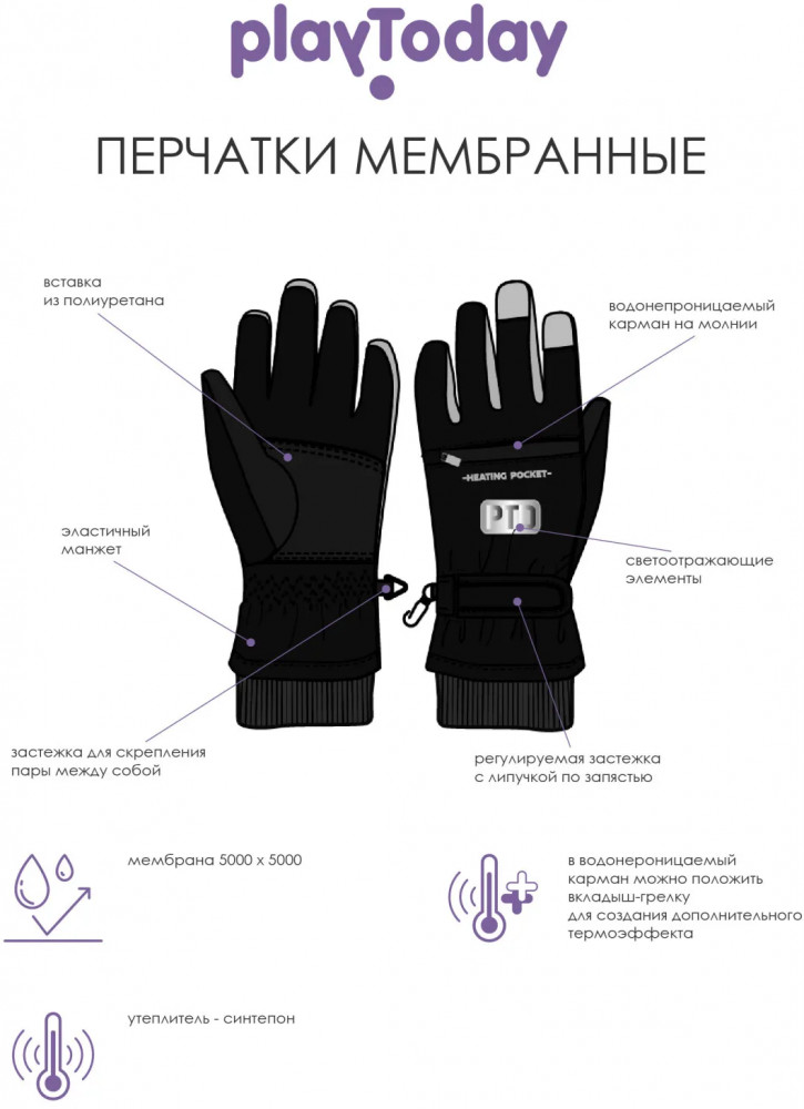 PlayToday Перчатки для девочек зимние