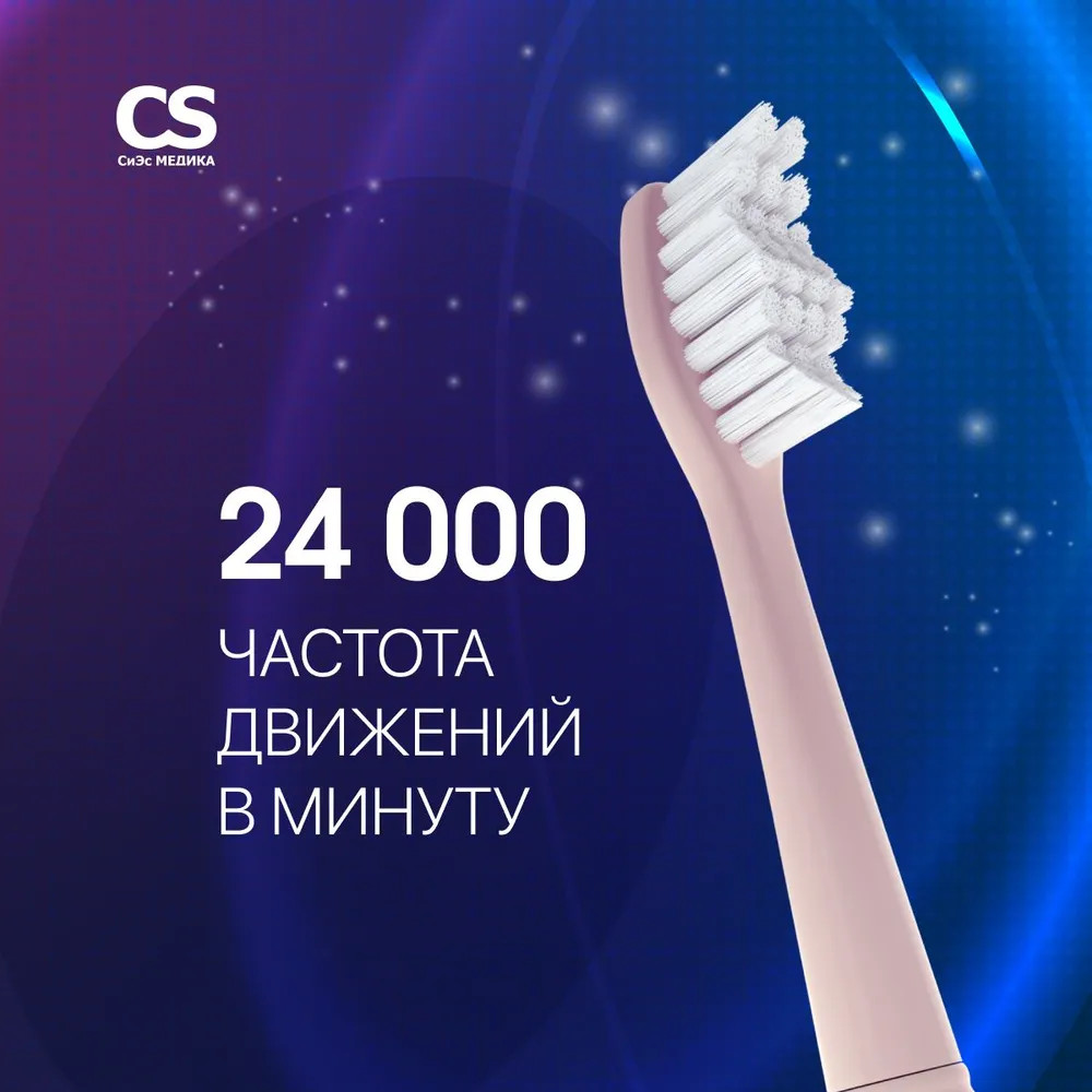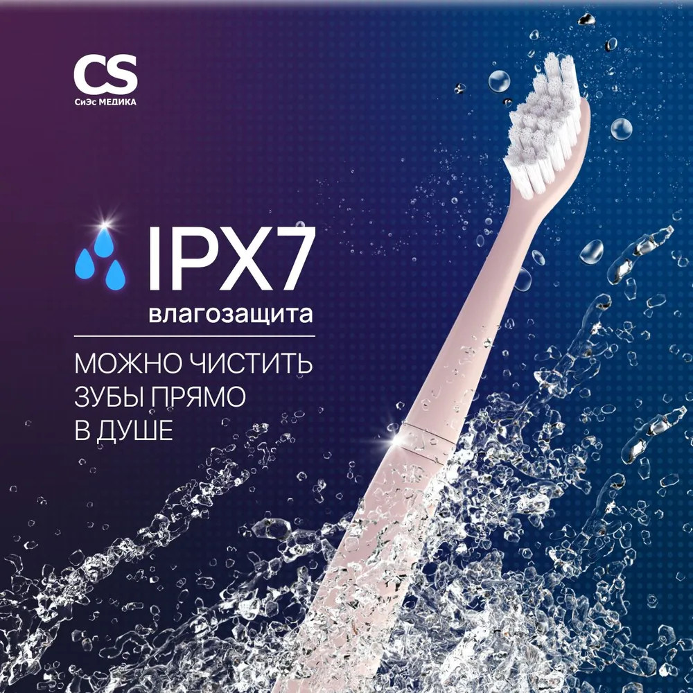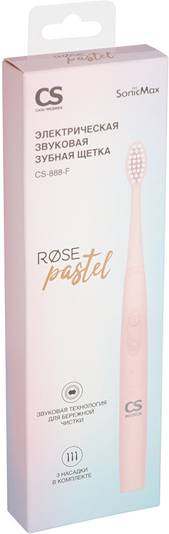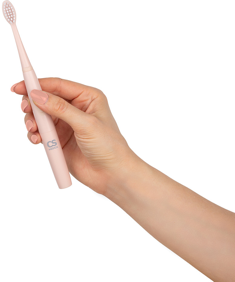 CS Medica SonicMax CS-888-F — звуковая зубная щетка для взрослых в пастельном розовом цвете. Звуковая частота 24 000 движений в минуту позволяет осуществлять полноценный уход за полостью рта. Может использоваться как зубная щетка для брекетов, так как движения щетинок безопасны для ортодонтических конструкций. Щетка работает от одной батарейки ААА (в комплекте) до 120 дней, при условии использования два раза в день по две минуты. Высокий уровень защиты корпуса от попадания влаги позволяет чистить зубы в душе.