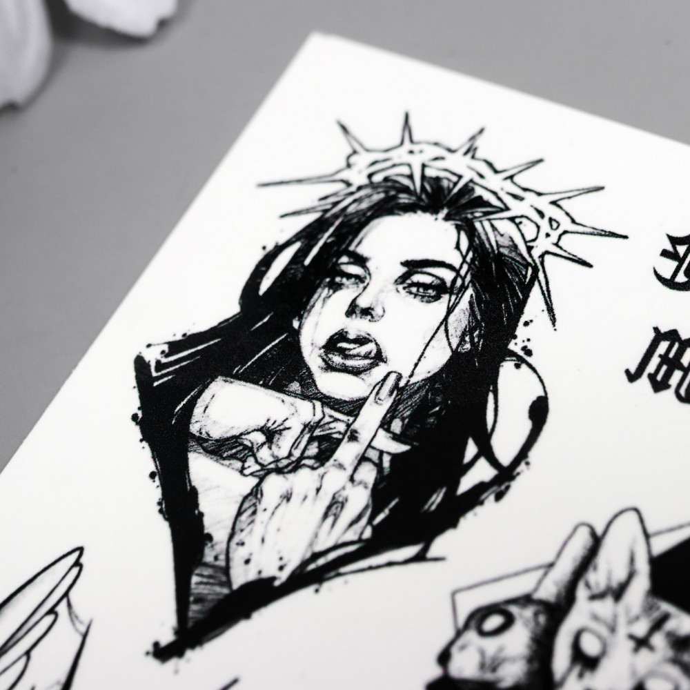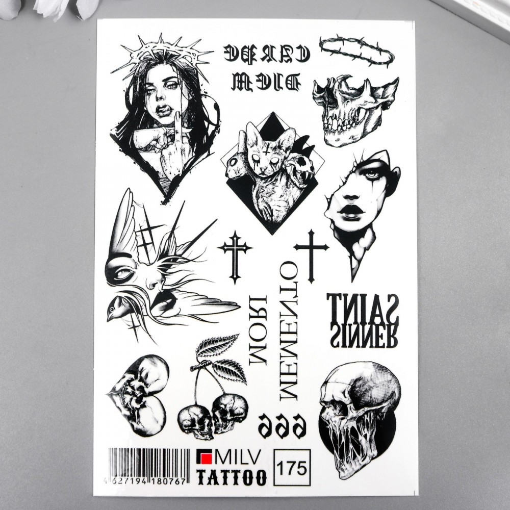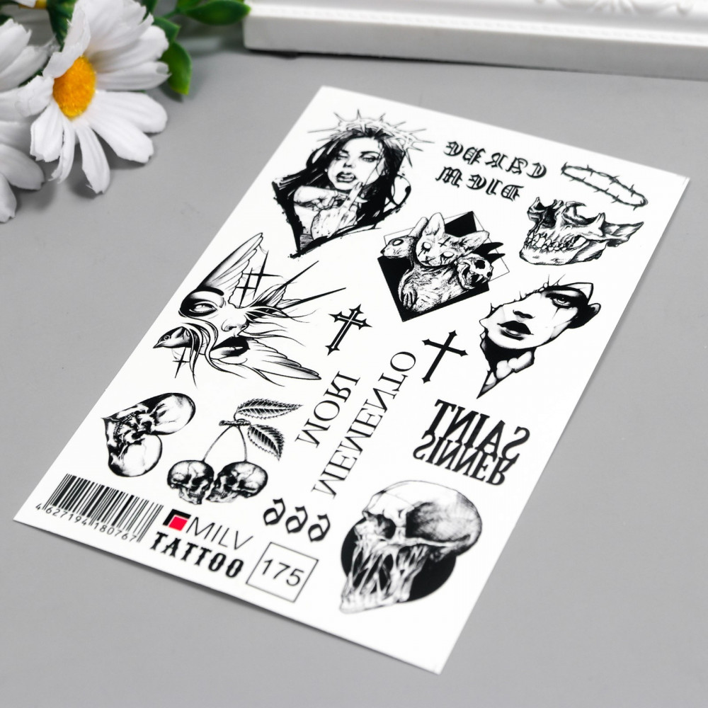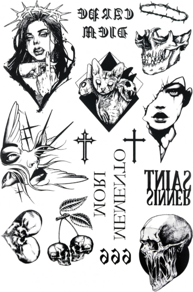 Татуировка на тело «Готические»В данный момент этот товар отсутствует в продаже. Возможно, у нас найдется аналогичный или похожий товар здесь. Временные татуировки легко наносятся и также легко удаляются при желании. Татуировки можно приобретать в качестве подарка, а также использовать на детских и взрослых праздниках в качестве развлечения. |