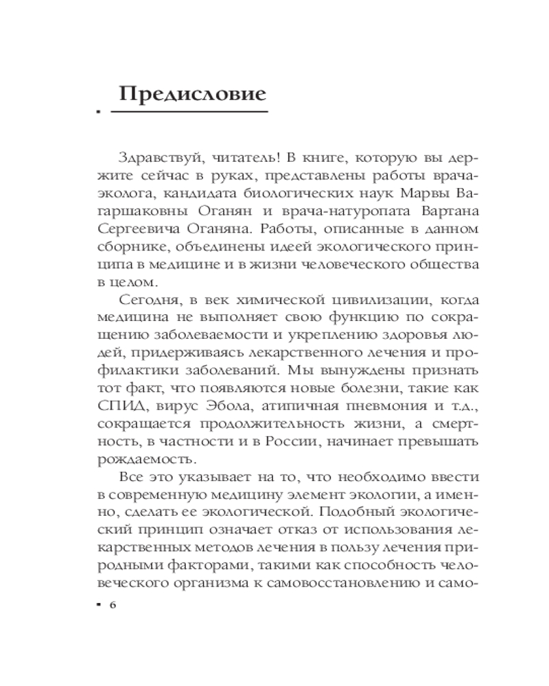 Экологическая медицина. Справочник для всей семьиМарва Вагаршаковна Оганян, Вардан Сергеевич Оганян В данный момент этот товар отсутствует в продаже. Возможно, у нас найдется аналогичный или похожий товар здесь. Серия: Экологическая медицина Марва Оганян — биохимик и врач-натуропат с 60-летним стажем терапевтической и лабораторной работы. Кандидат биологических наук. Автор эксклюзивной системы знаний об обменных причинах заболеваний, биохимически обоснованном механизме их развития и способах выздоровления, протекающих без применения лекарств путем очищения тканей организма на клеточном уровне и их правильного питания. |